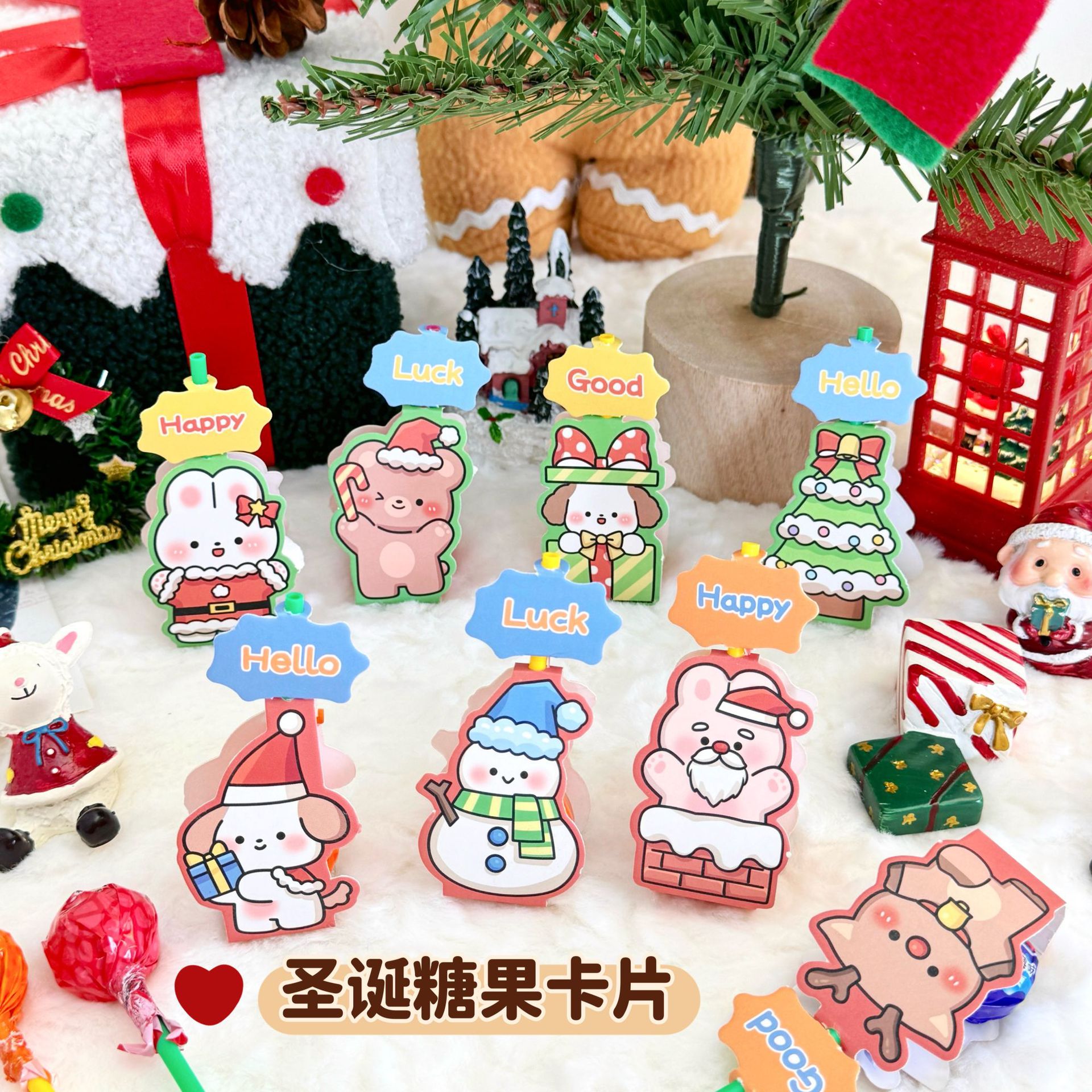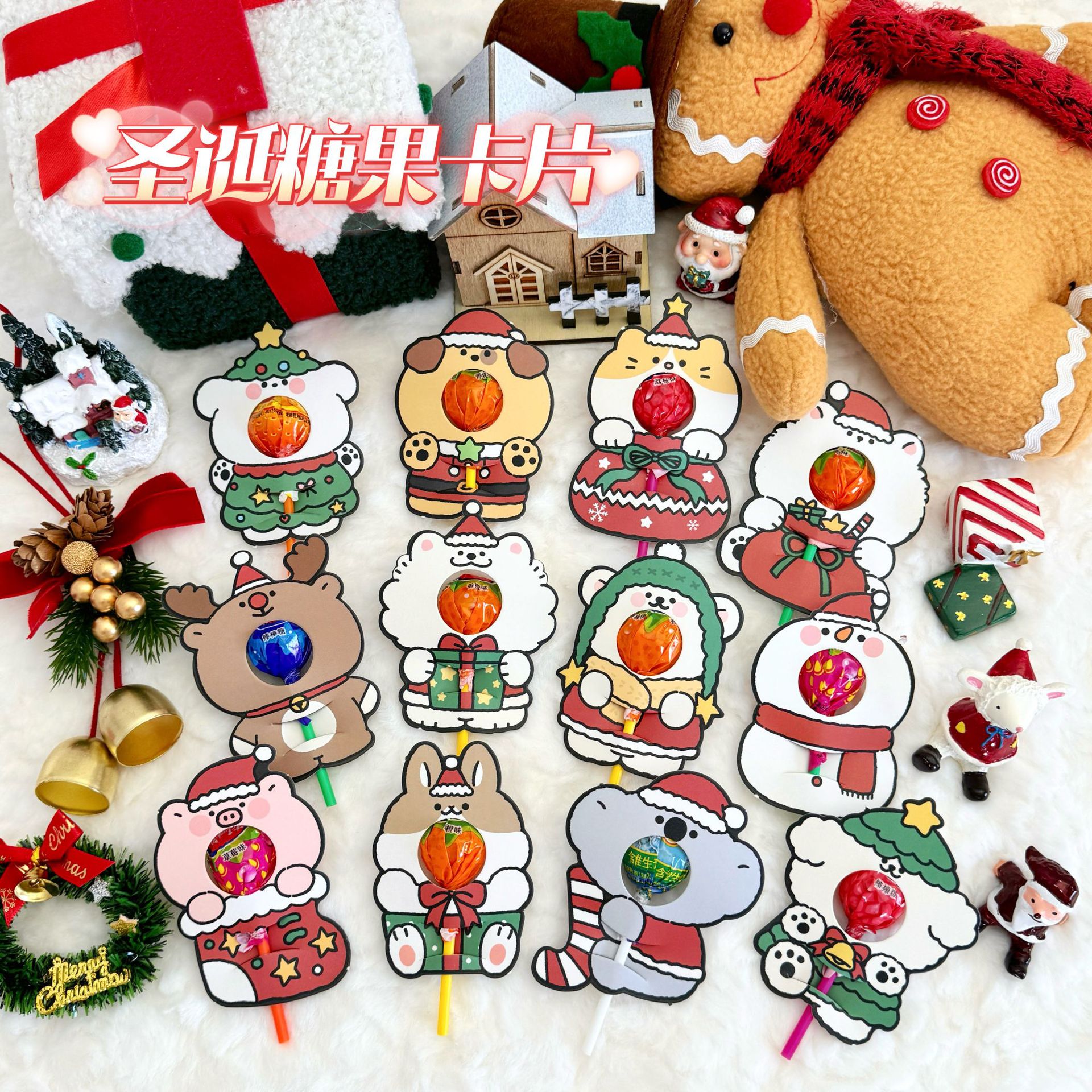 卡通圣诞节棒棒糖卡纸励志祝福文字贺卡鼓励语装饰卡送学生精致插