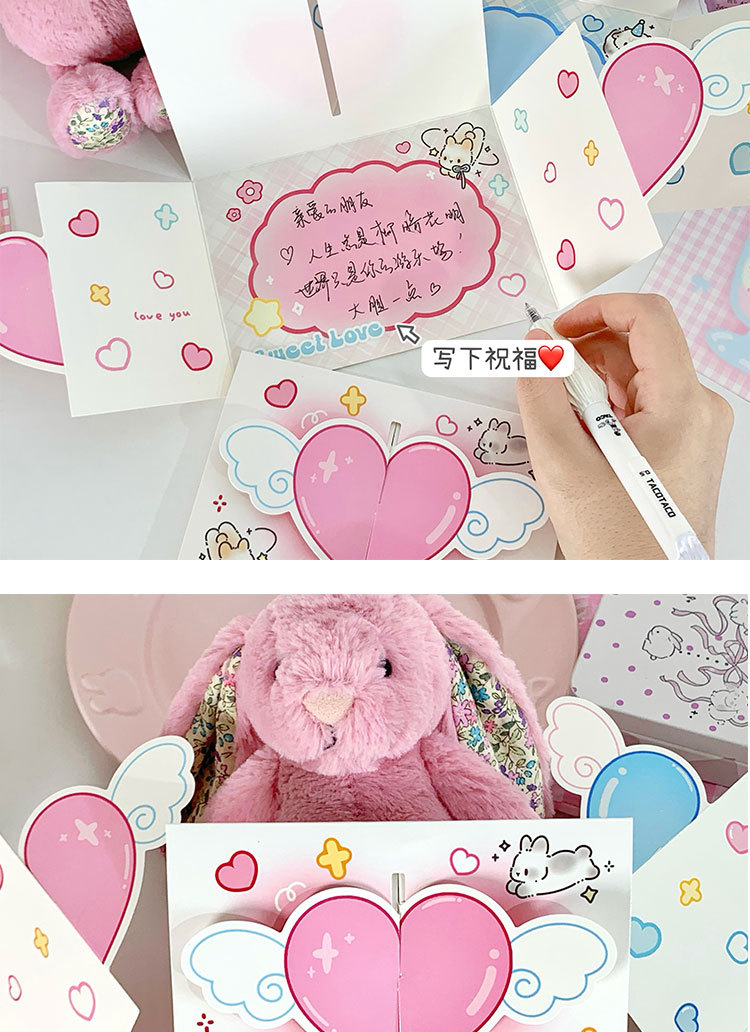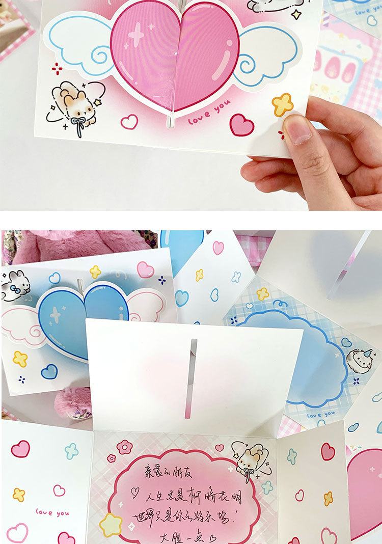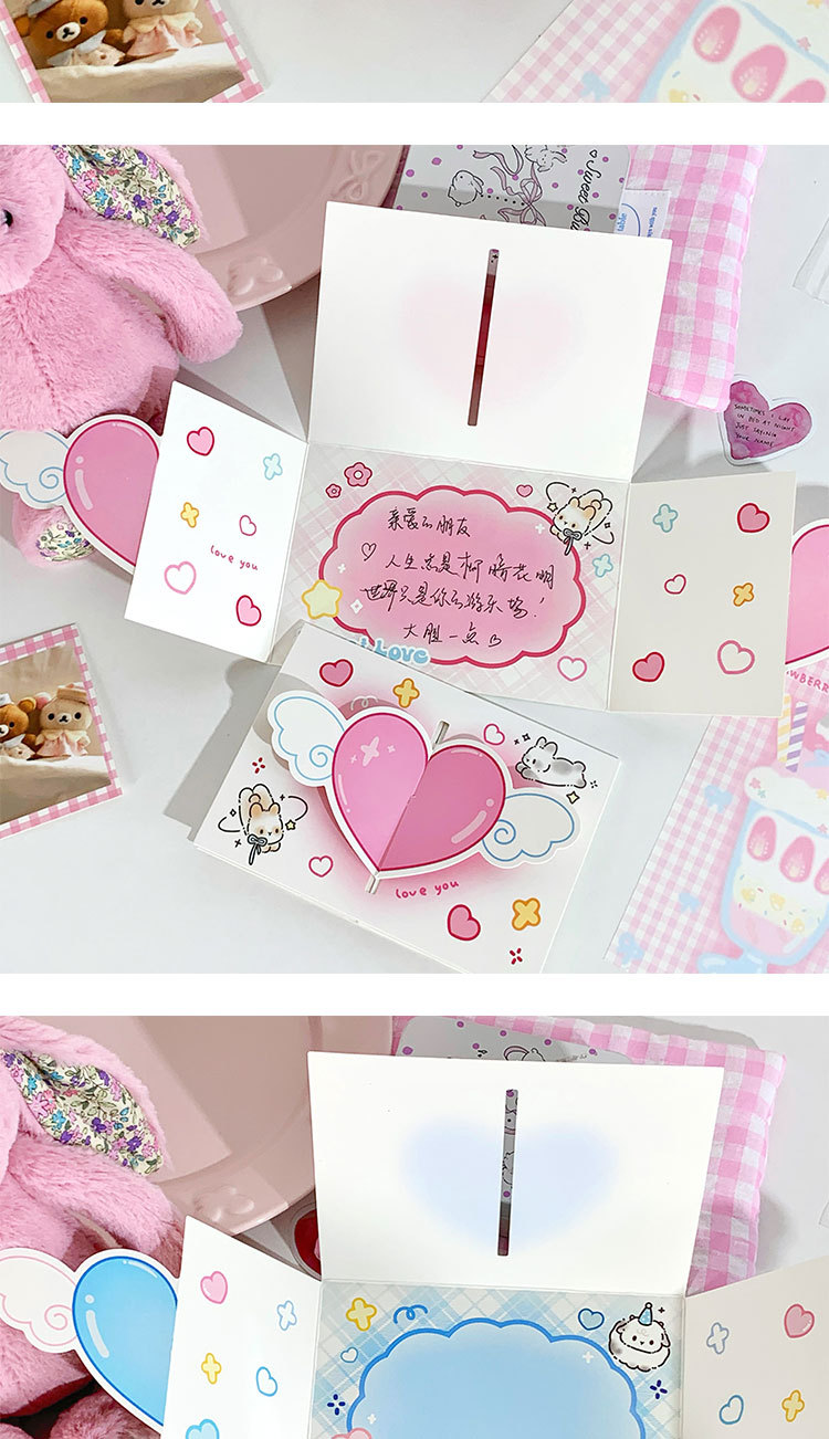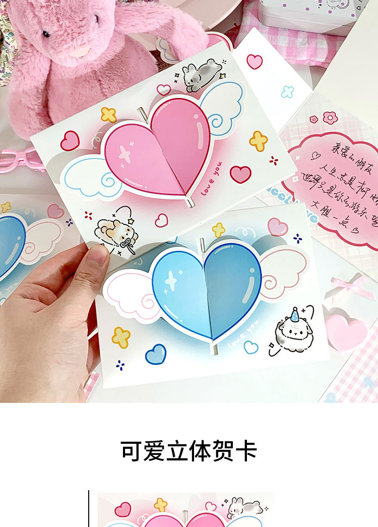 立体愛グリーティングカードins高颜値復古3d折り畳み可能祝福カード封筒付き親友カップルプレゼント