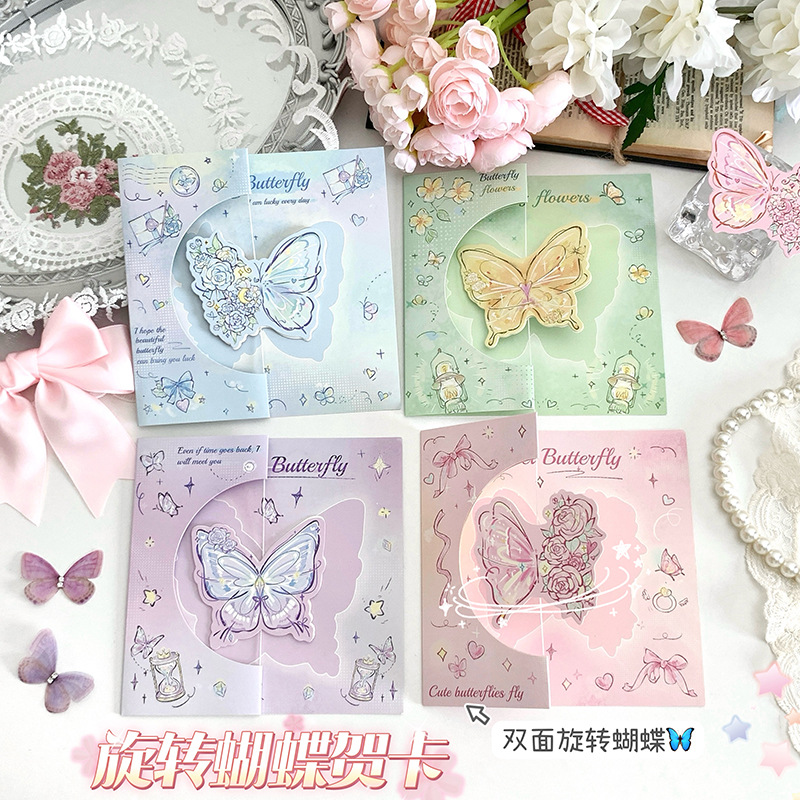 立体旋转蝴蝶贺卡ins高颜值3D可折叠祝福卡片带信封闺蜜情侣礼物