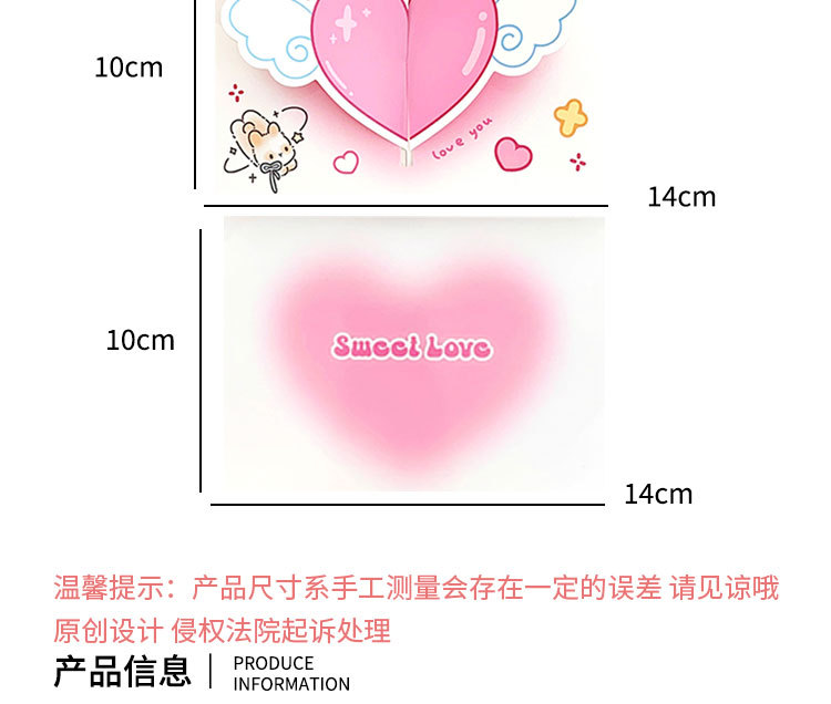 サイズ 立体愛グリーティングカード-ピンク,立体愛グリーティングカード-ブルー