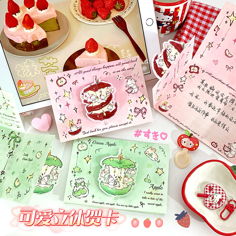立体アップルグリーティングカードイン高価値ロマンチックな折りたたみ式祝福カード封筒便箋親友カップルギフト