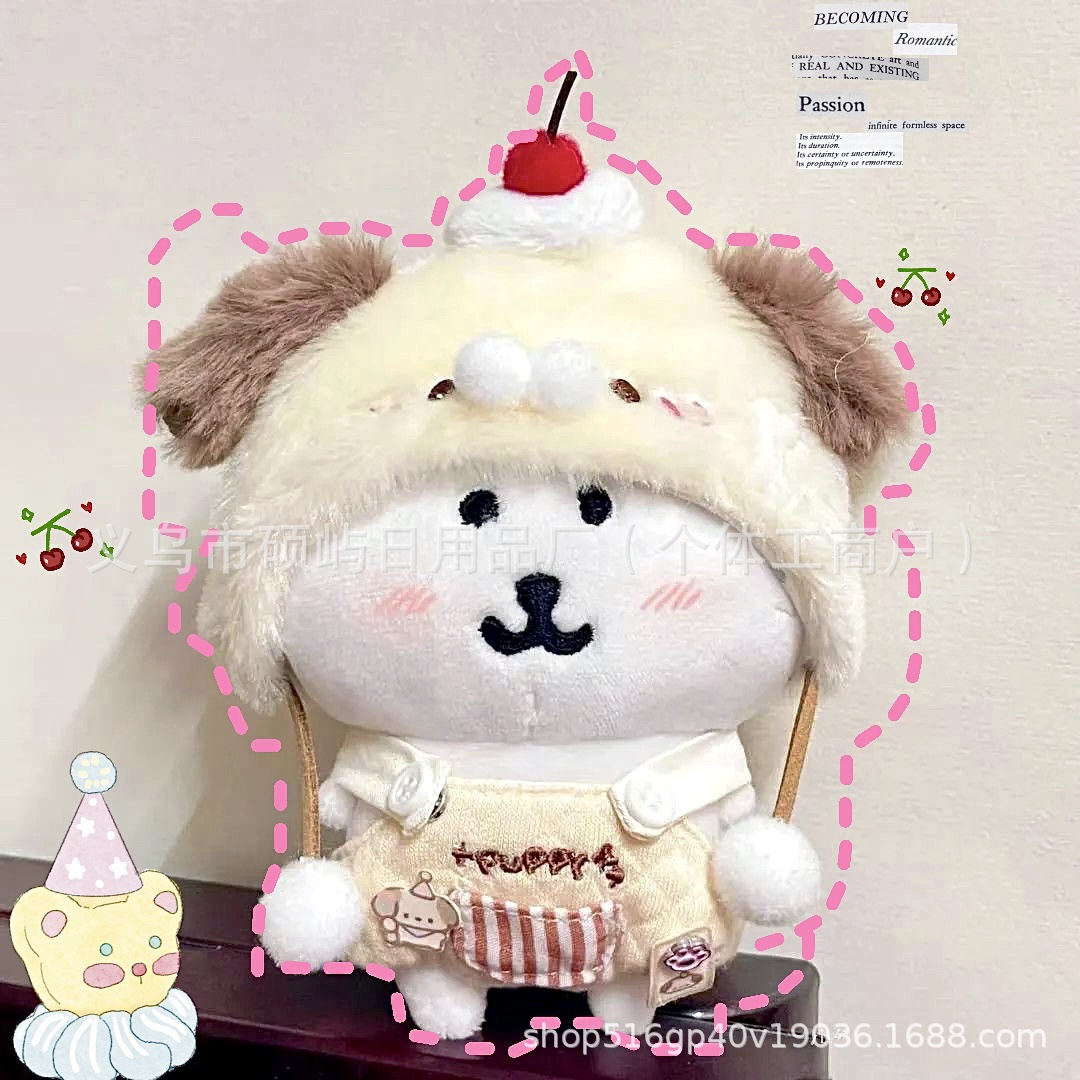 自嘲娃衣挂件汪崽下午茶咬一口汉堡玩偶棉花娃娃13cm自嘲熊换装