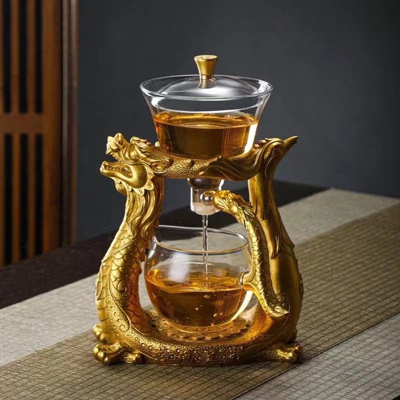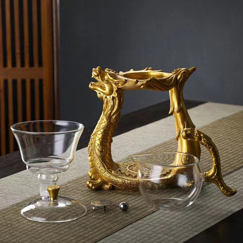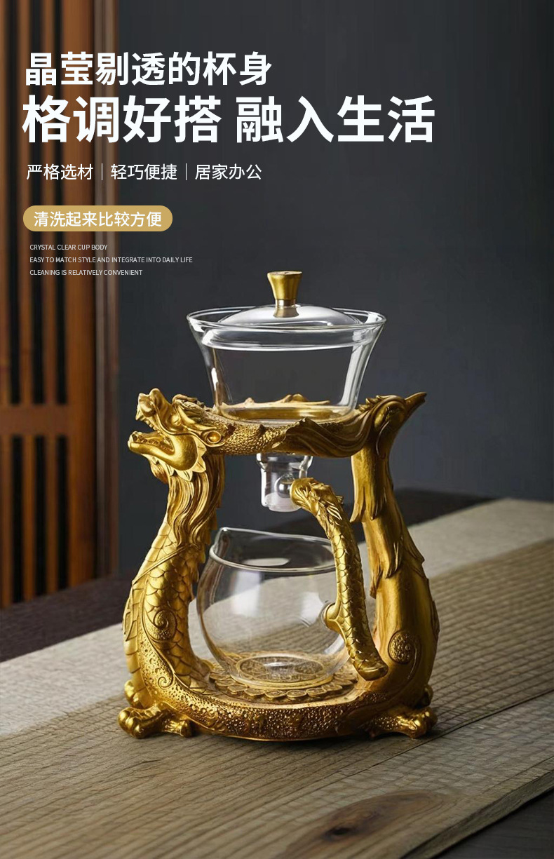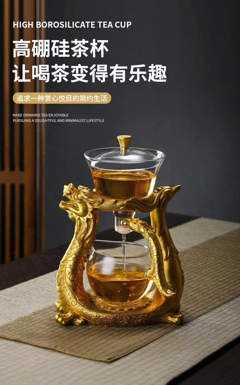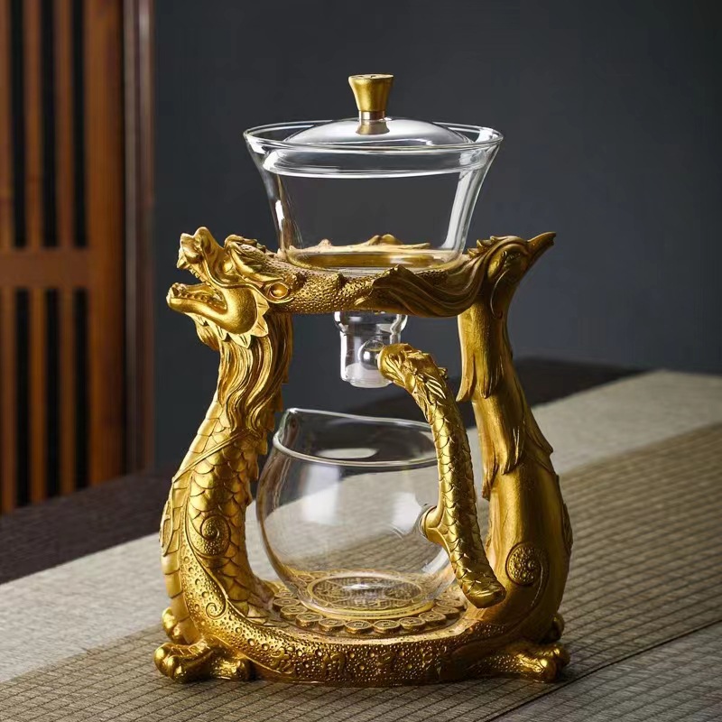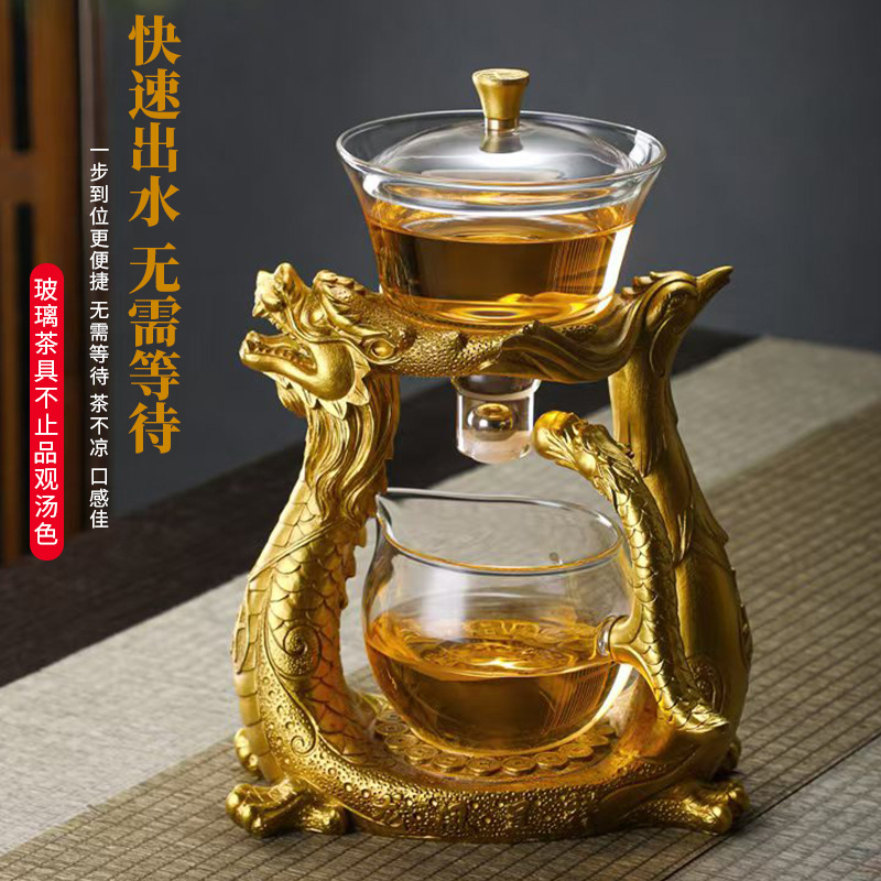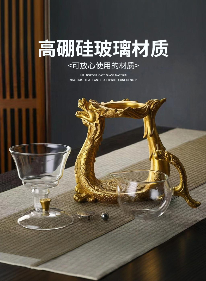 透黑龙凤呈祥宫灯泡茶壶半自动玻璃懒人泡茶器磁吸套装茶具国潮