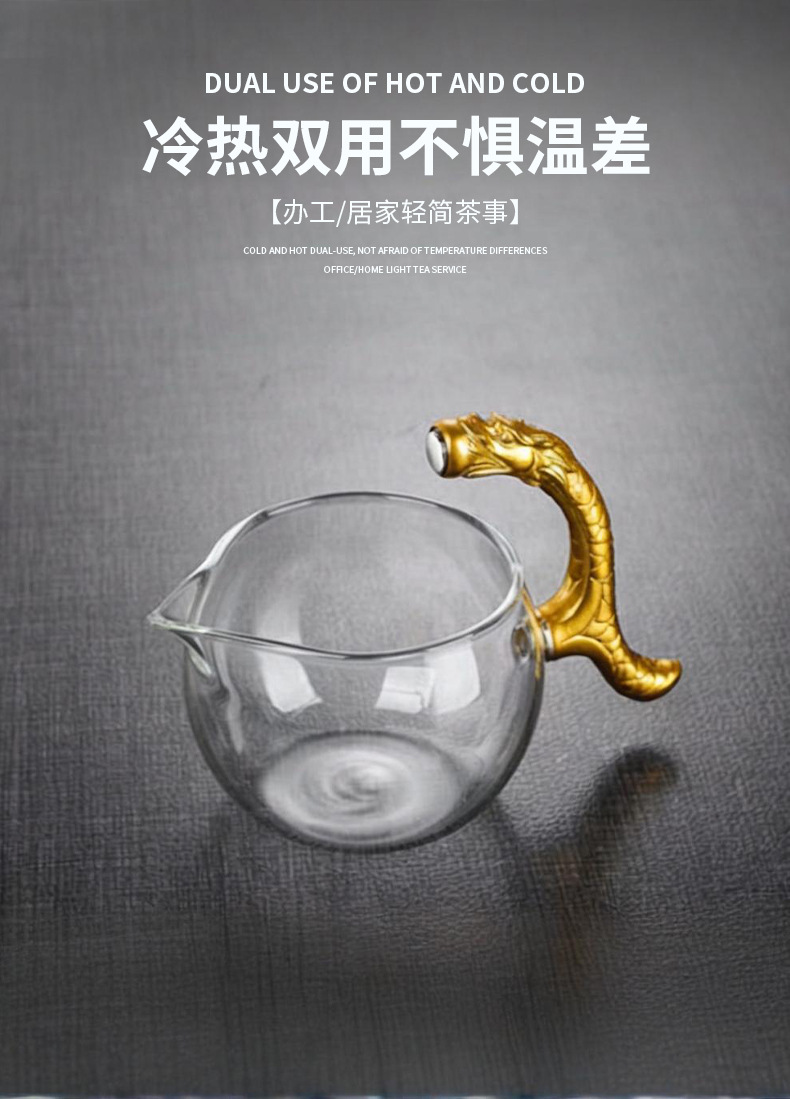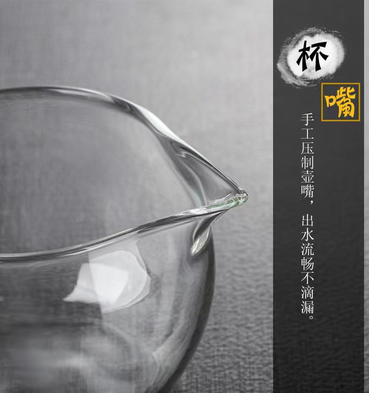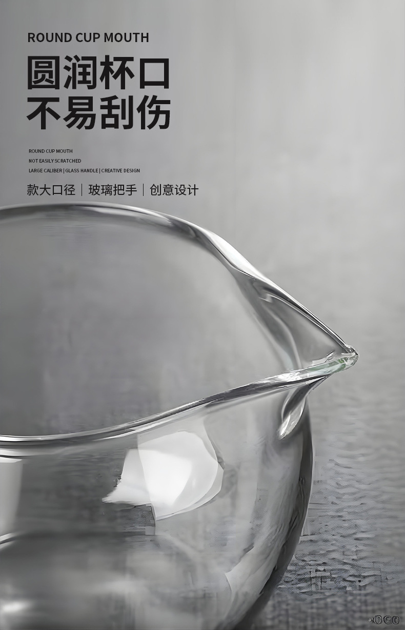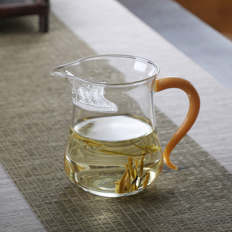 三日月フィルター付きフェアカップ、カラーハンドル、高ホウケイ酸ガラスティーシャー、オフィス尖口緑茶フェアカップ