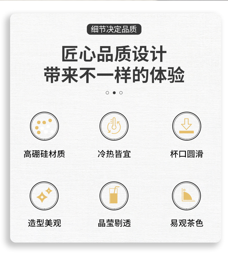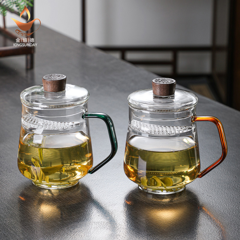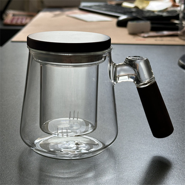 ハンドル付き高ホウケイ酸ティーカップ、ウォーターカップ、オフィスガラスティーカップ、茶水分離3カップ