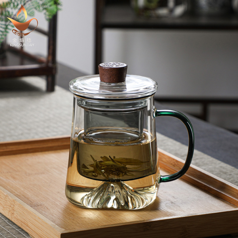 高硼硅透明玻璃大容量三件杯观山木盖花茶杯办公室茶水分离泡茶杯