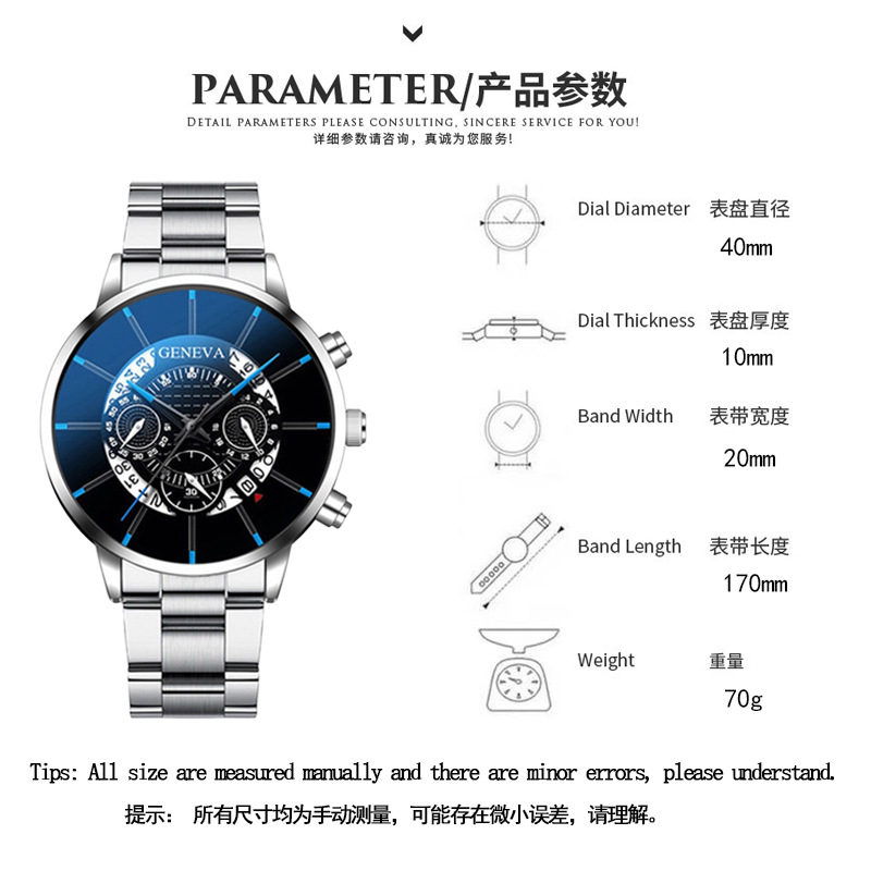 3117 シングルカレンダー グラデーション針スチールベルトウォッチ