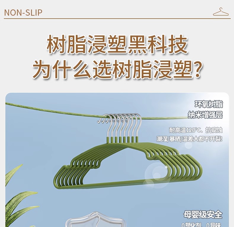晾衣架家用挂衣阳台晒衣服加厚粗防滑无痕阳台树脂弧形成人衣撑子