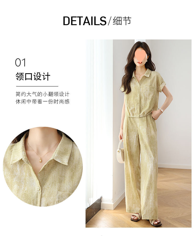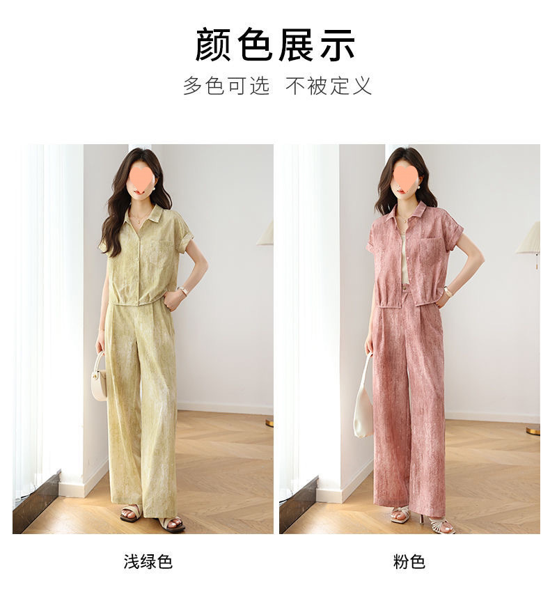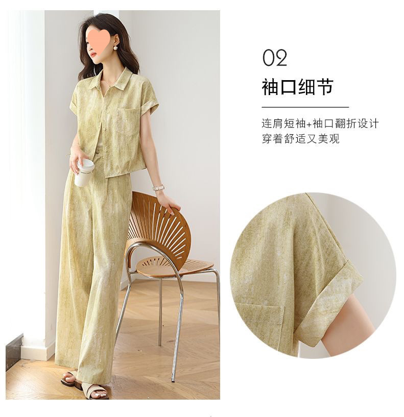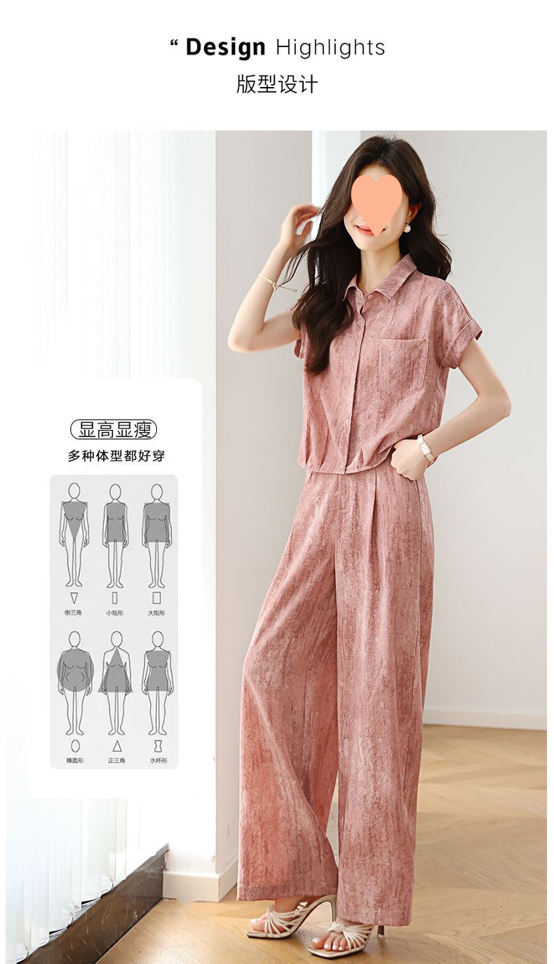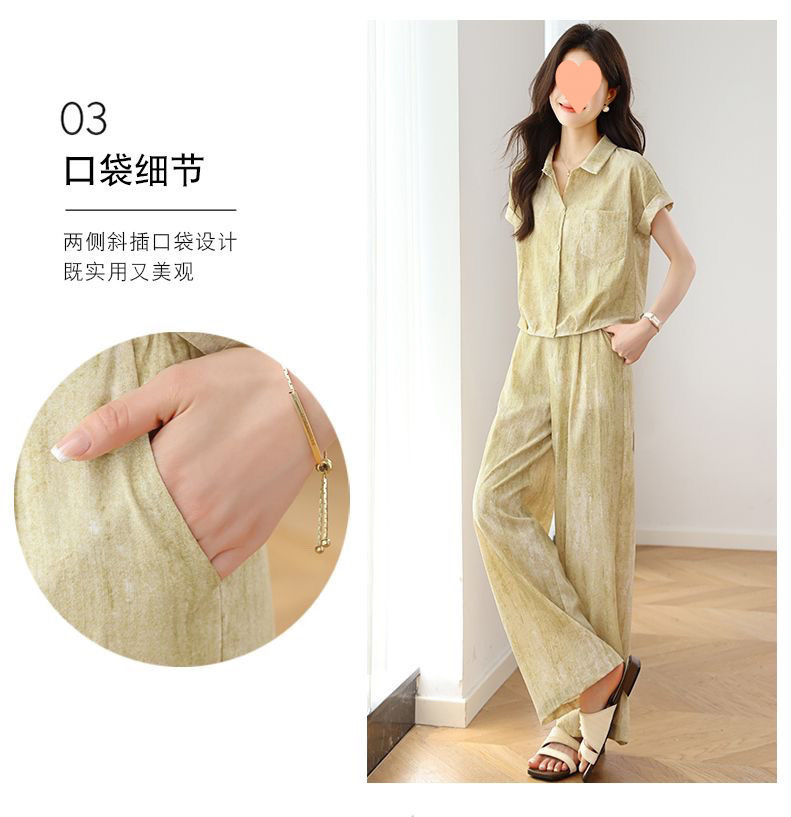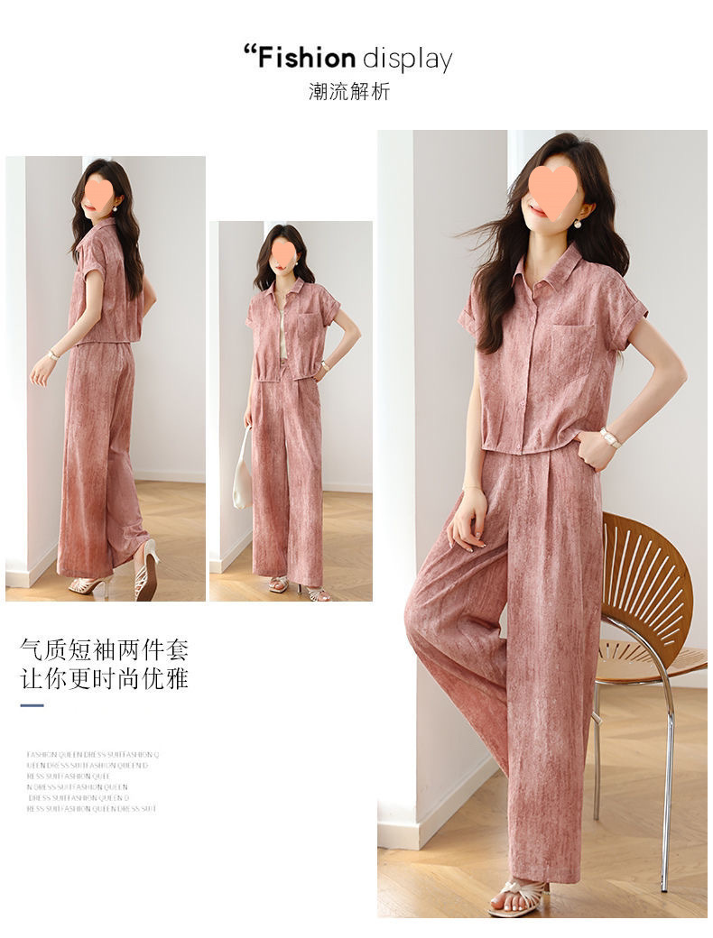 ファッションスーツ女性の夏薄い 2025 新しいスタイルレディスタイルカジュアル半袖シャツワイドレッグパンツ 2 点セット