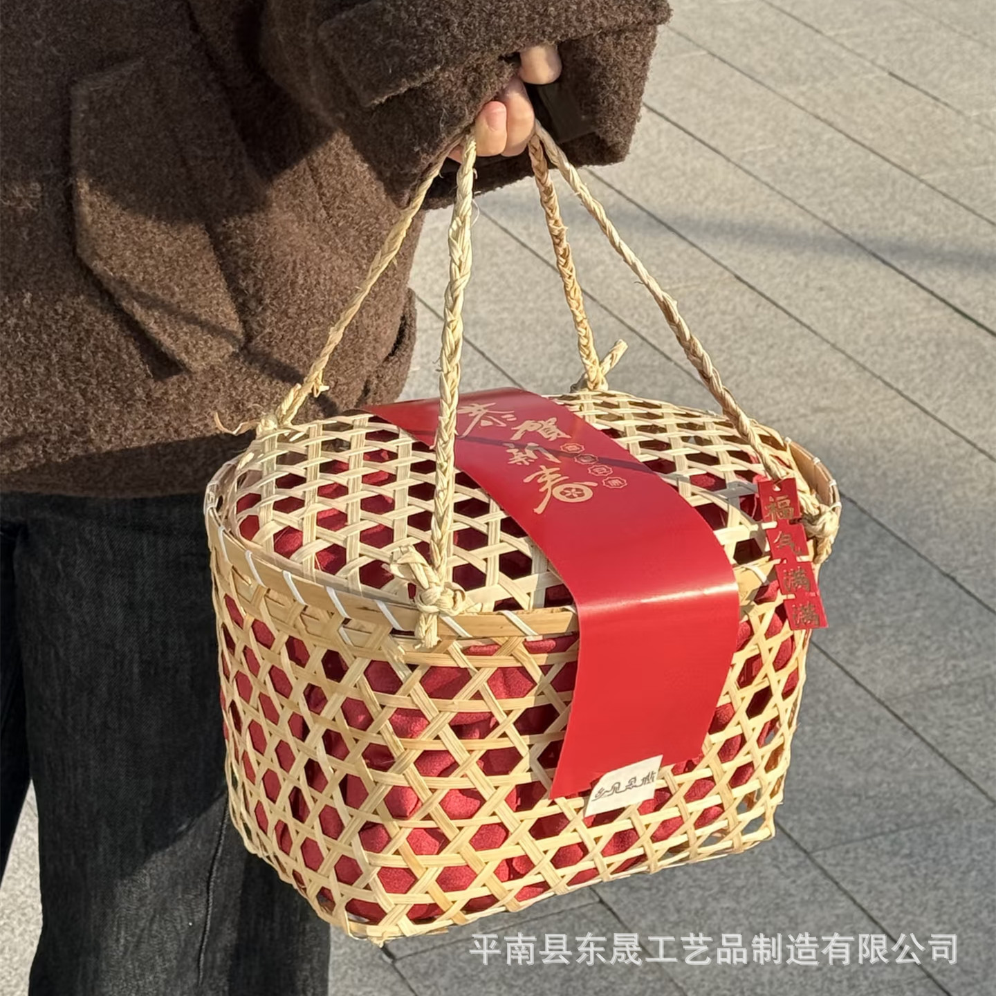 中国式手作り竹編み端午ちまきギフトボックス特産包装バスケット結婚お土産竹バスケット木製手提げバスケット