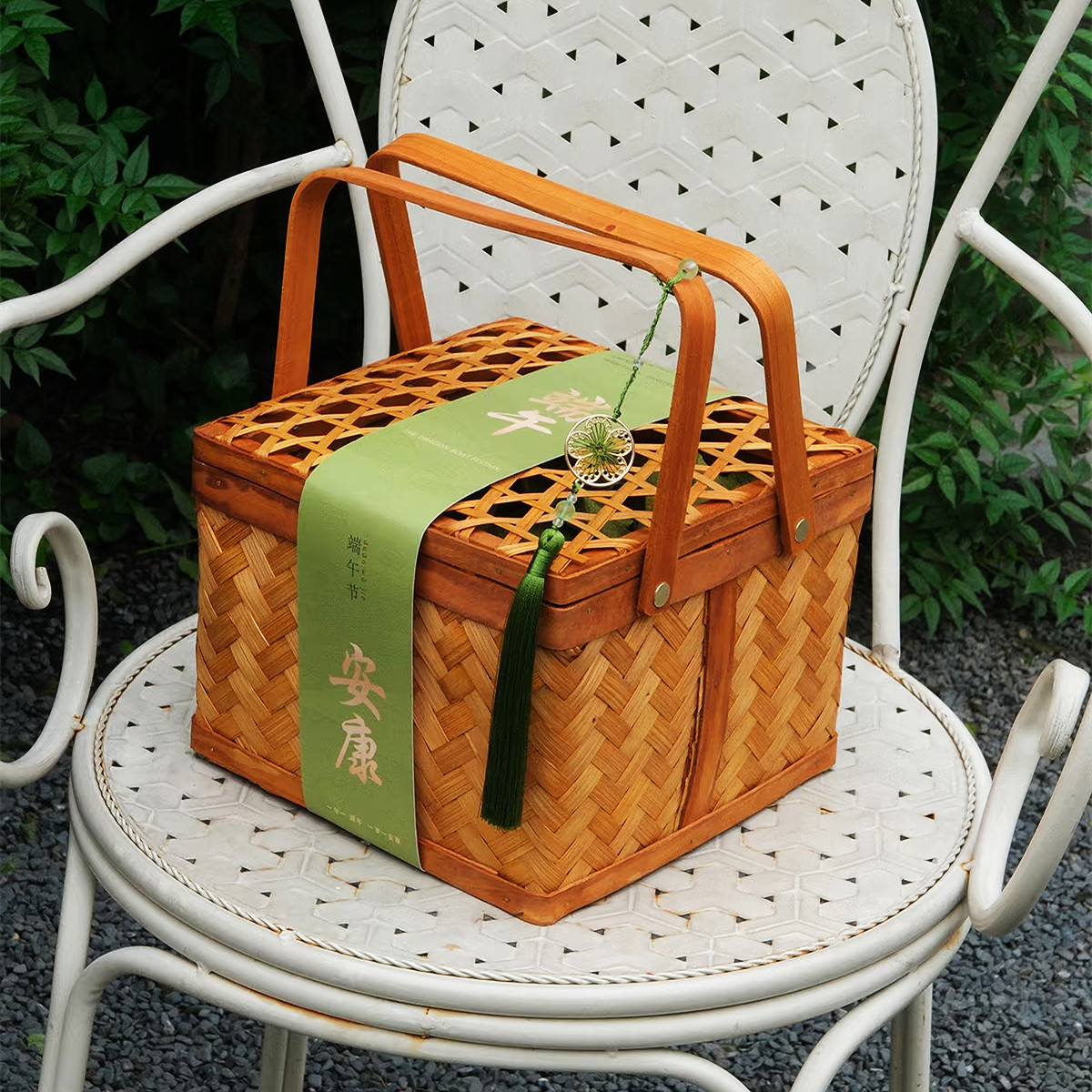 2026年新年端午節竹製ギフトボックス包装、塩漬け食品、年物、お祭り用お土産、手提げバスケット、竹製収納かご