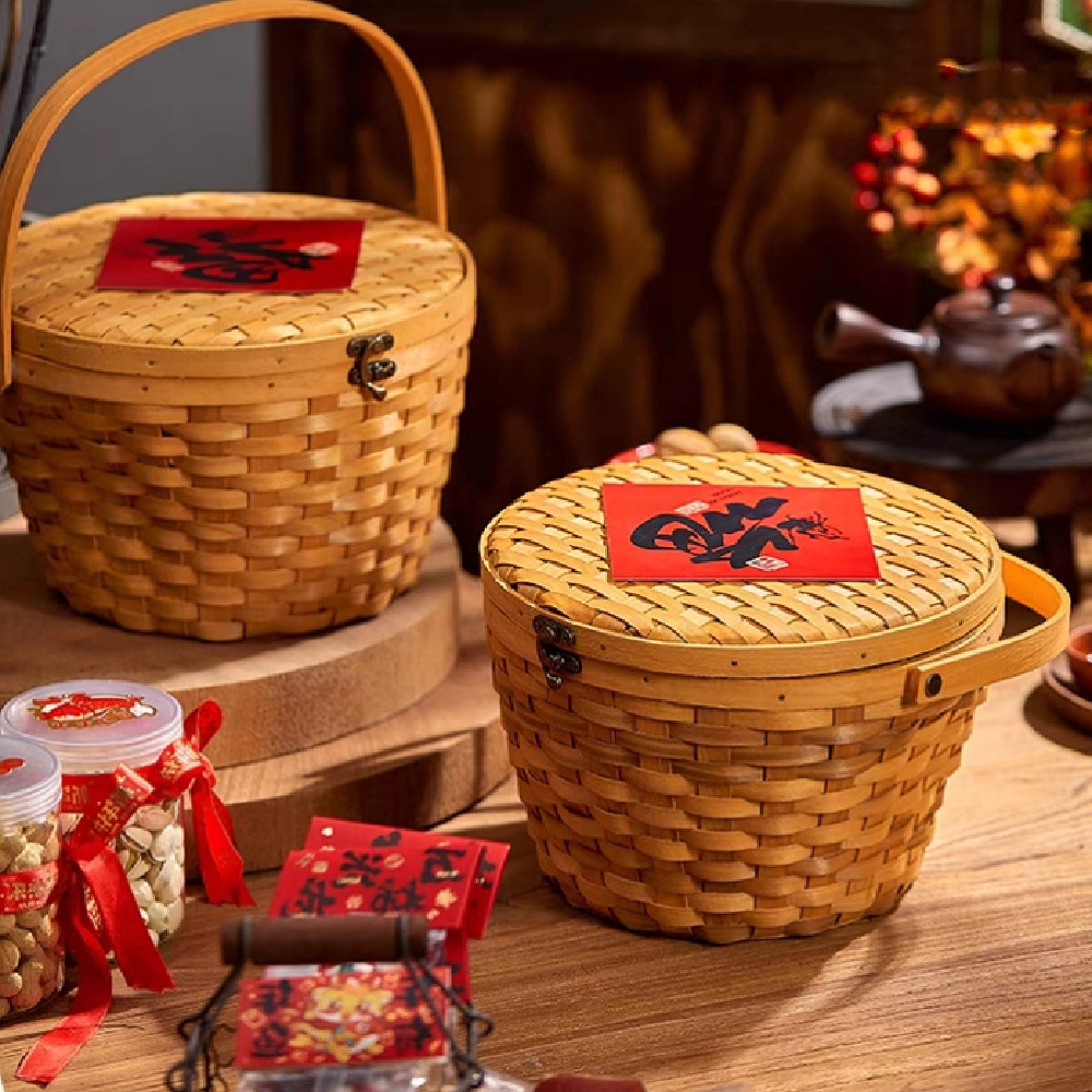 2025 新年ギフトボックス包装竹収納バスケットビスケットペストリーキャンディ中国の特製焼き茶竹箱