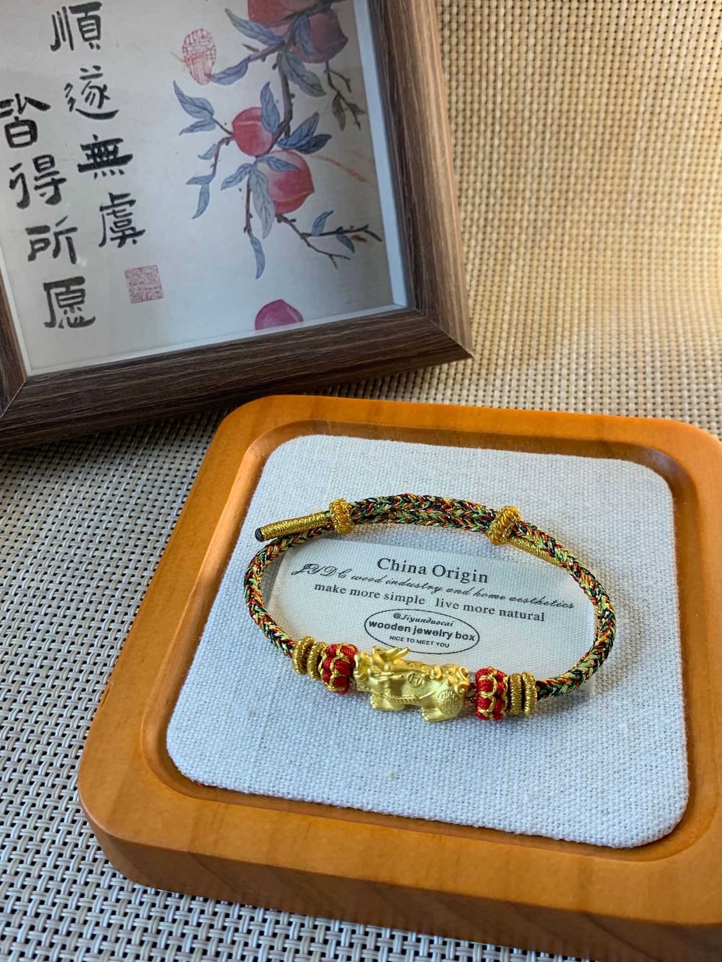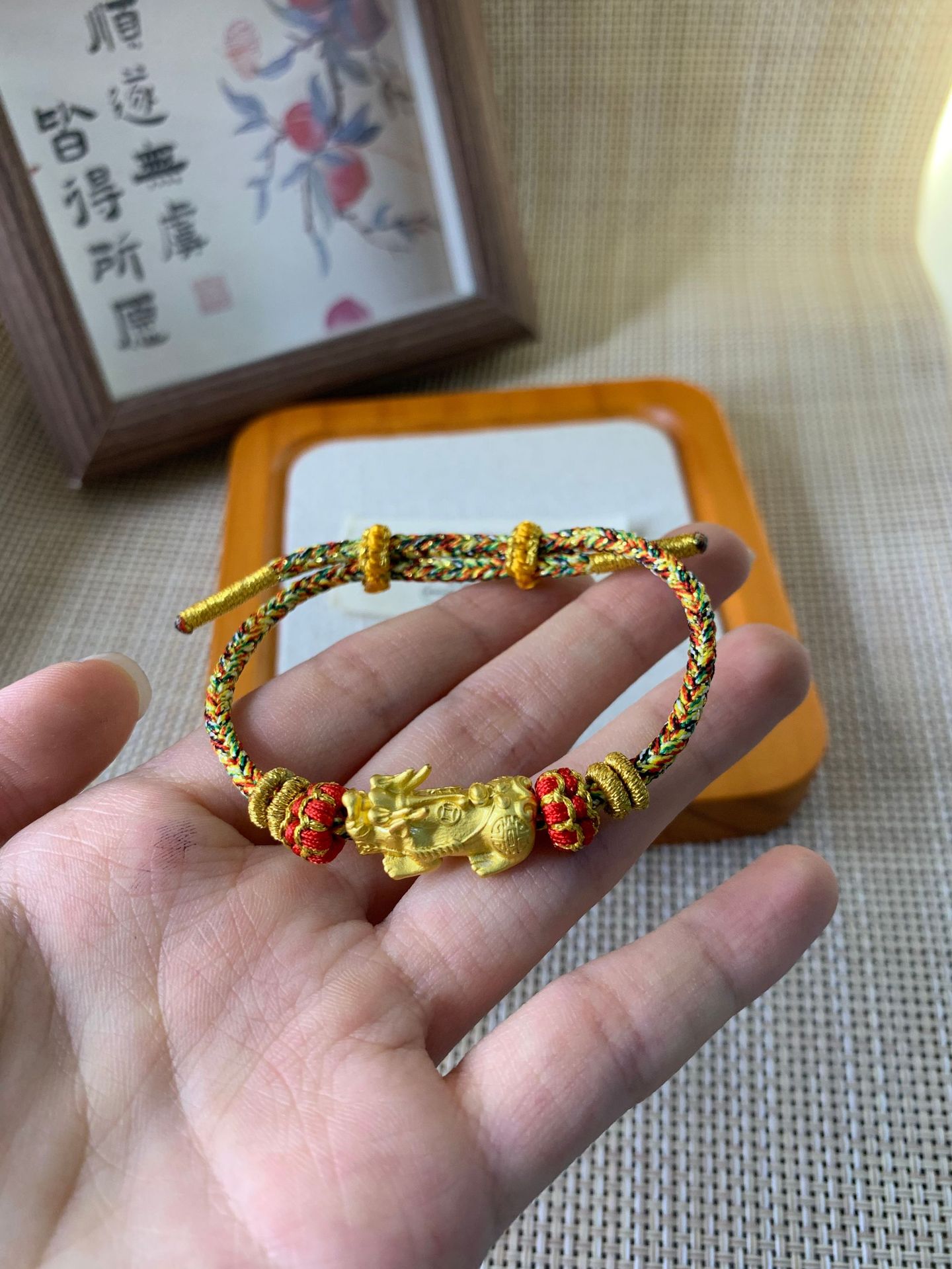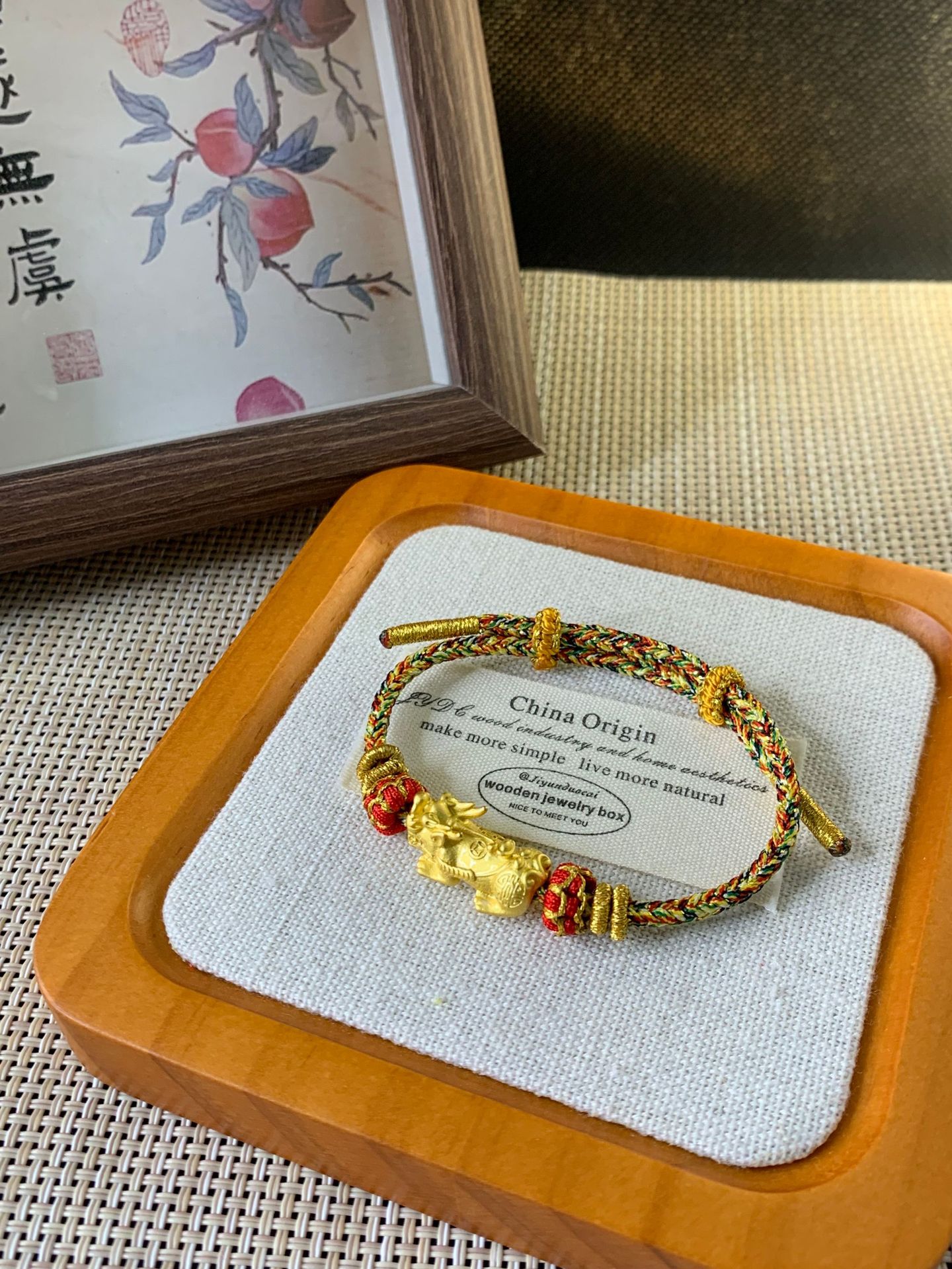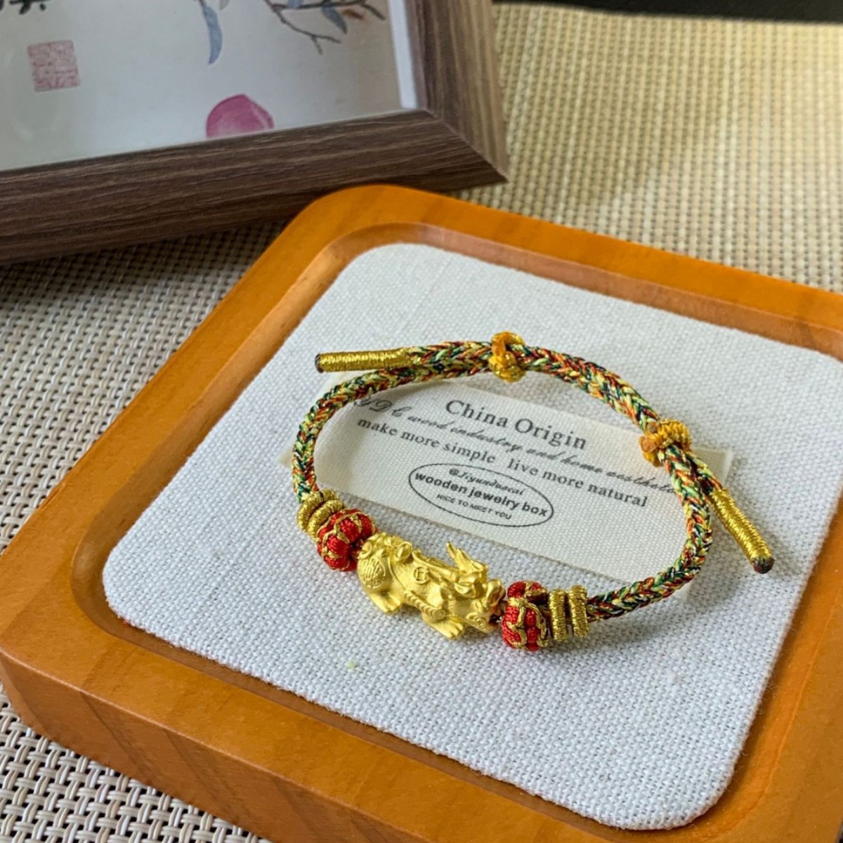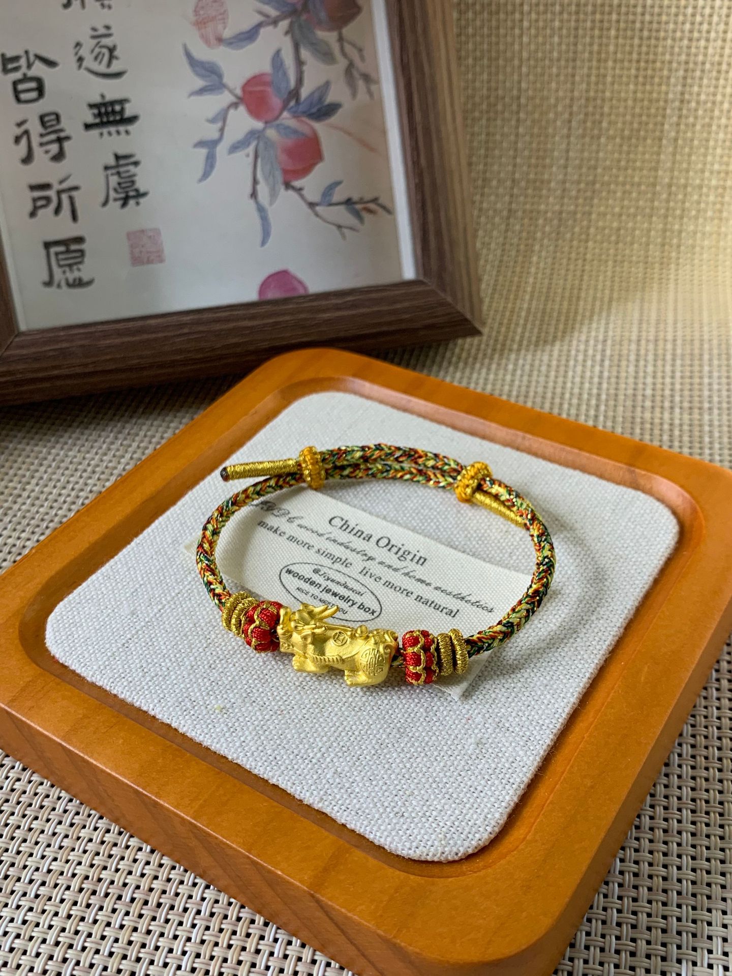 新中国式のシンプルな手巻きの男性カップルの金招財納福のブレスレットの手の縄の女性の手巻きの綿の縄の編み物の装飾品