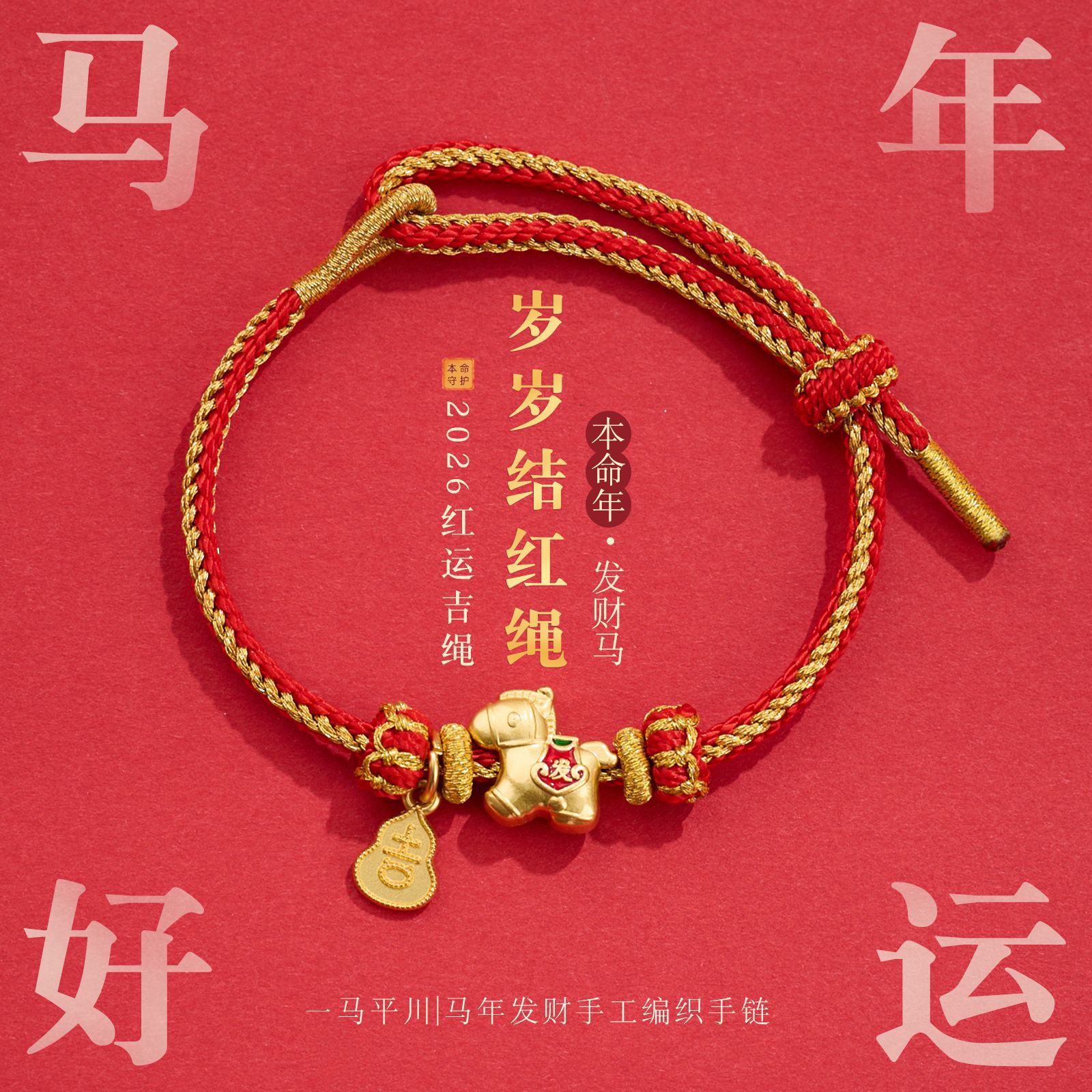 新年手绳马年好运红绳手链DIY手工编织本命年男女好运礼物批发