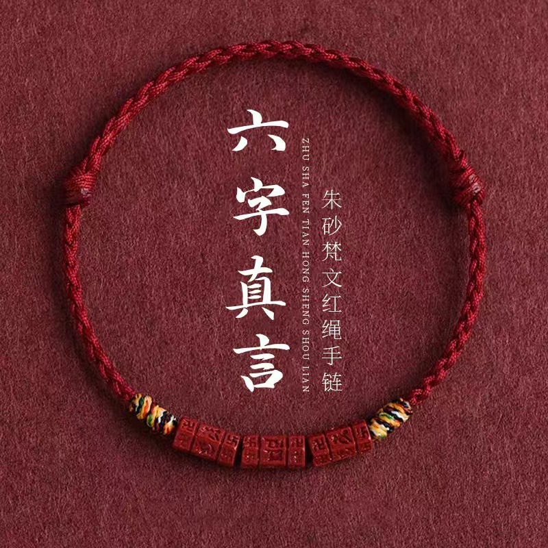 含有量朱砂六字真言紅縄ブレスレット足鎖男女本命年転運珠チベット式色とりどり編み手綱