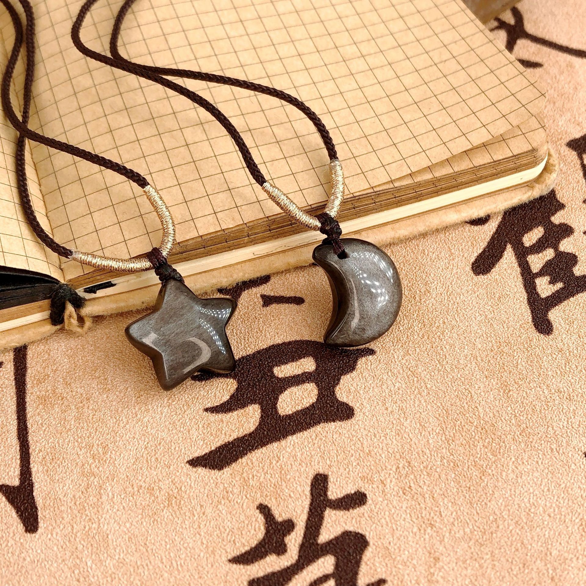 天然の銀曜石星月のペンダントの鎖の玉のネックレスの黒曜石のレトロなカップルのペンダントは調節できます。