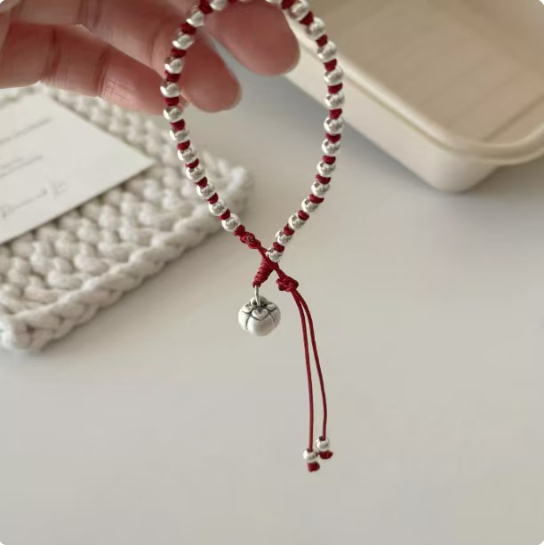 蛇年路路通小金珠ブレスレット 女性用 赤い紐編み込み 誕生年運命の珠 シンプルな細めのカップルブレスレット 男性用