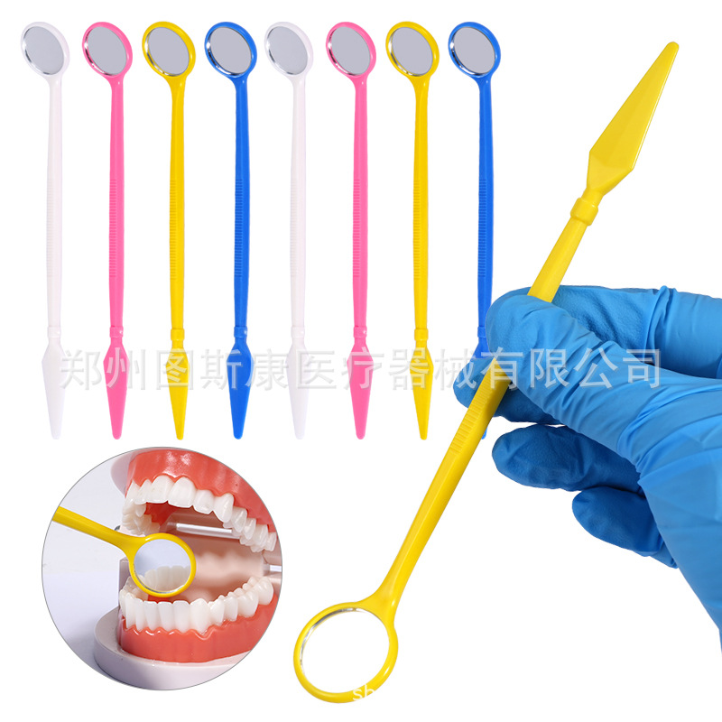 牙科一次性口腔镜带抹刀独立包装彩色镜塑料牙镜牙齿检查口腔护理