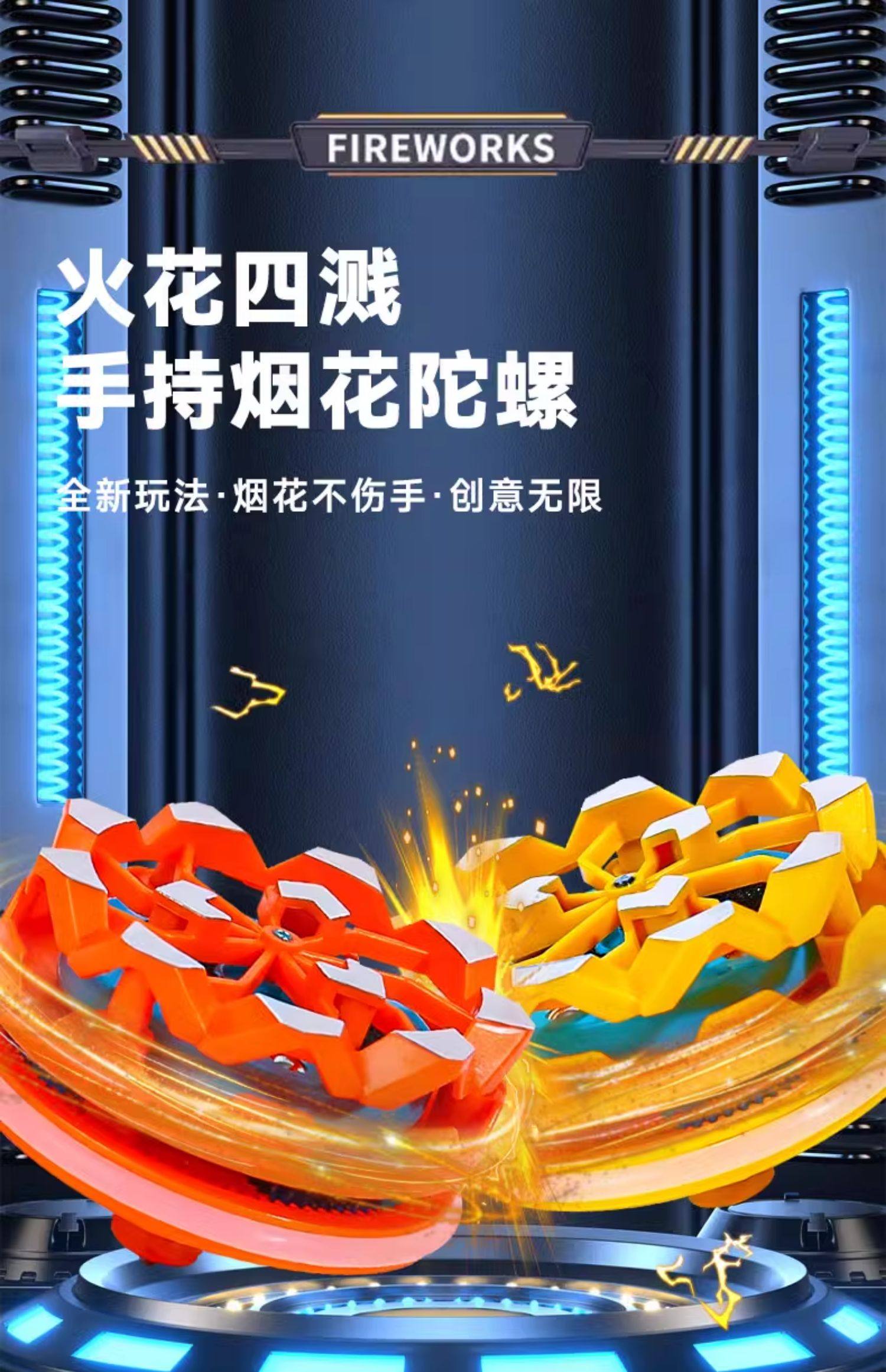 抖音同款烟花陀螺会冒火的发光旋转爆旋陀螺对战解压玩具儿童男孩