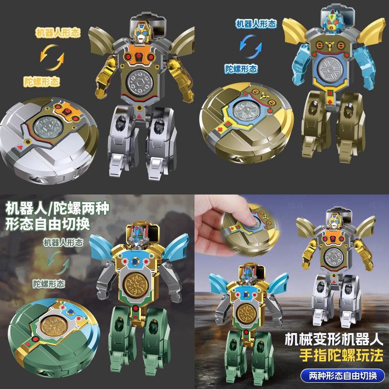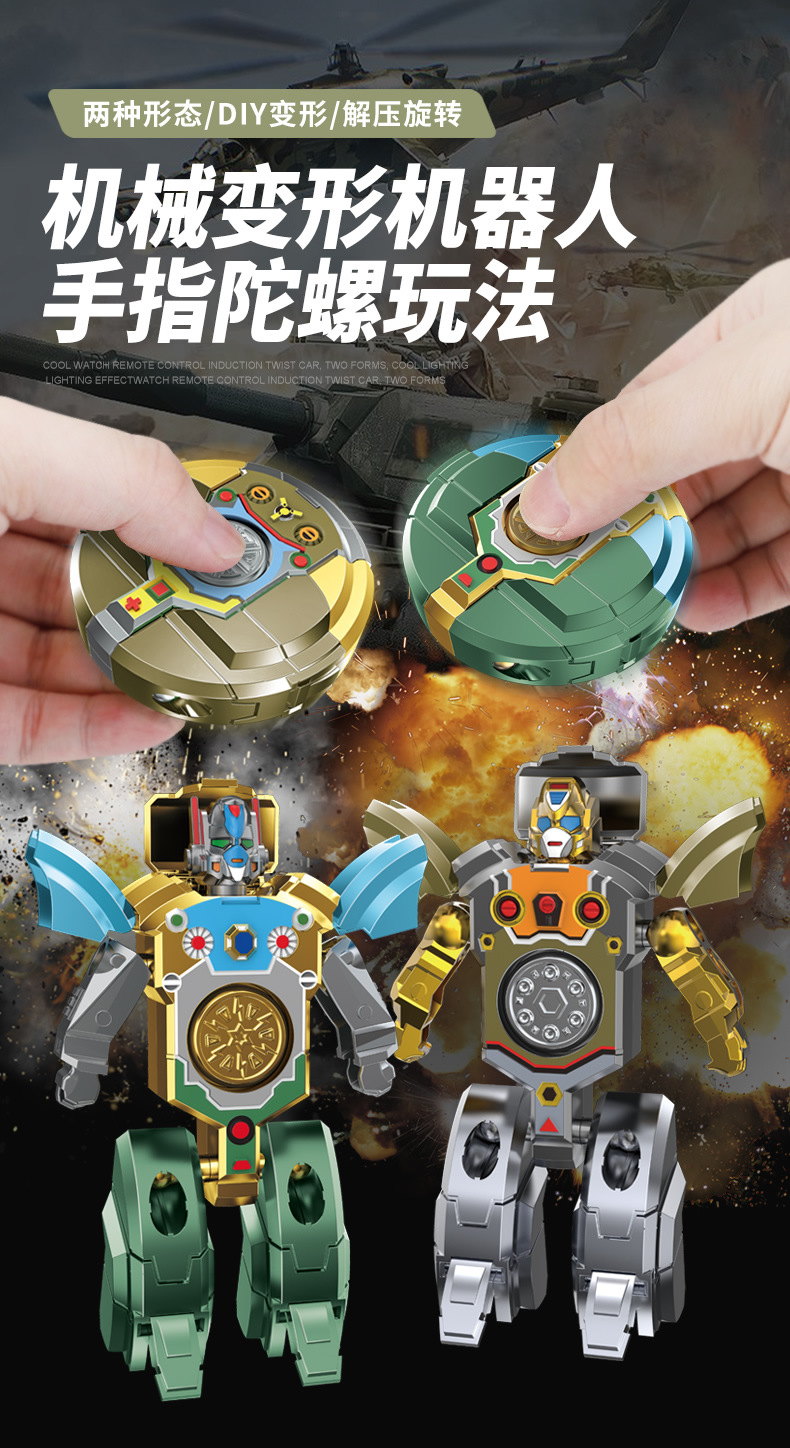 爆款机甲二合一变形机器人手指陀螺DIY变形解压旋转变形指尖陀螺