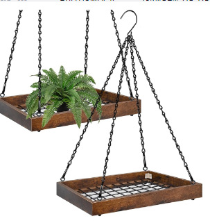 采用木质托盘搭配铁艺链条的组合形式,木质托盘提供置物空间,铁艺链条用于悬挂,结构稳固且具设计感,可轻松悬挂于阳台、庭院等空间,节省地面占地,打造立体绿植景观 。