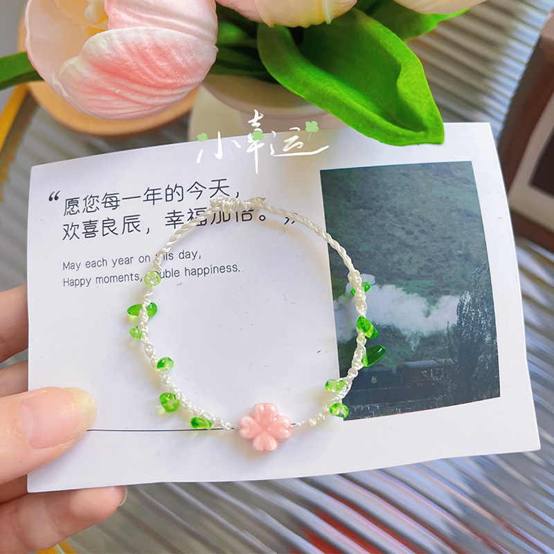 DIY 手作り四つ葉のクローバーブレスレット春の妖精編組ブレスレット素材パッケージガールフレンドへのクリエイティブギフト