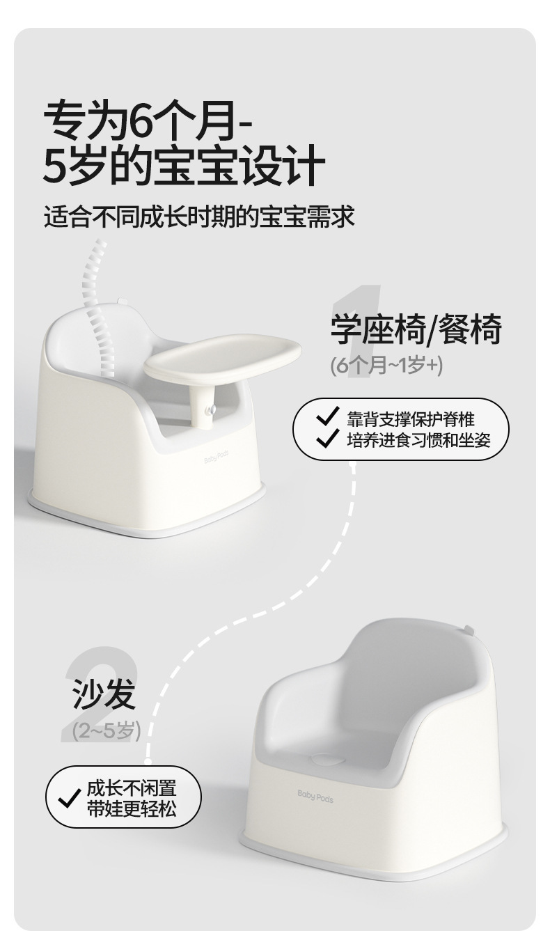babypods宝宝餐椅学坐椅吃饭家用婴幼儿成长椅矮多功能儿童沙发椅