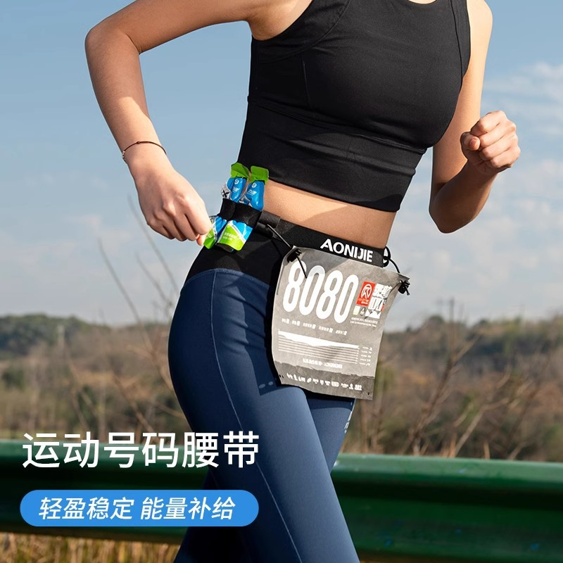 マラソンレースナンバーバッジ エナジージェル トライアスロン クロスカントリーランニングレース 伸縮性ナンバーバックルベルト