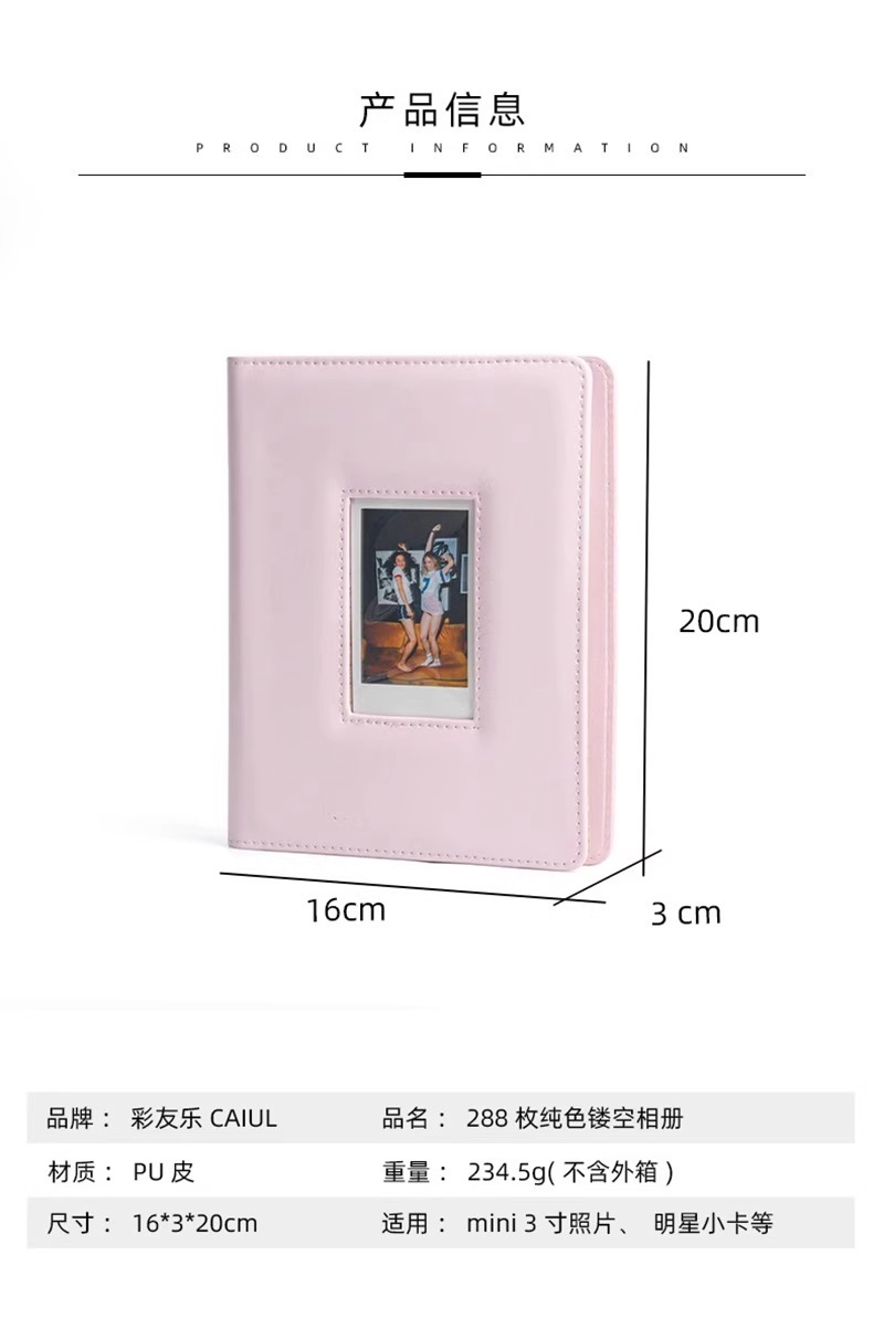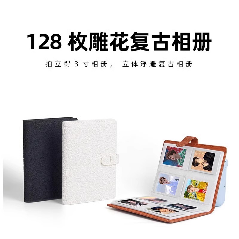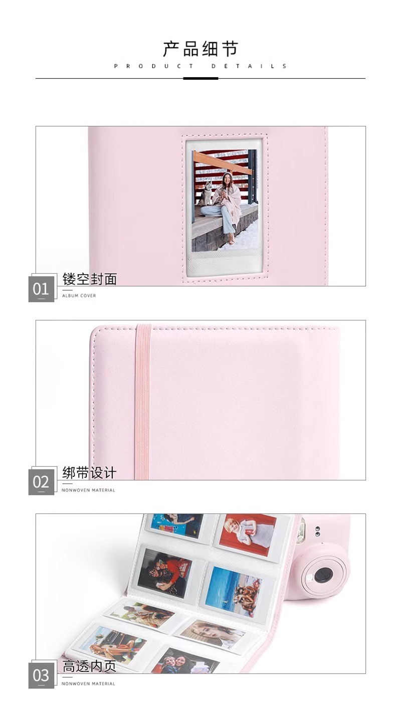 3寸小卡卡册拍立得minii12/11/9通用相册128枚照片纯色PU影集相册