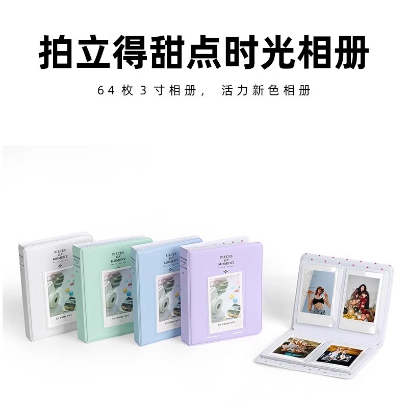 封面颜色 64枚鸢尾紫,64枚薄荷绿,64枚浅樱粉,64枚绣球蓝,64枚茉莉白,64枚黑色,256枚相册粉色,256枚相册绿色,256枚相册天蓝色,256枚相册藏青色,256枚相册白色,64枚甜点时光相册白色(竖版),64枚甜点时光相册蓝色(竖版),64枚甜点时光相册粉色(竖版),64枚甜点时光相册黑色(竖版)
