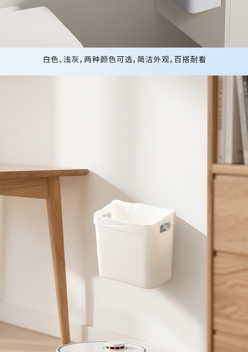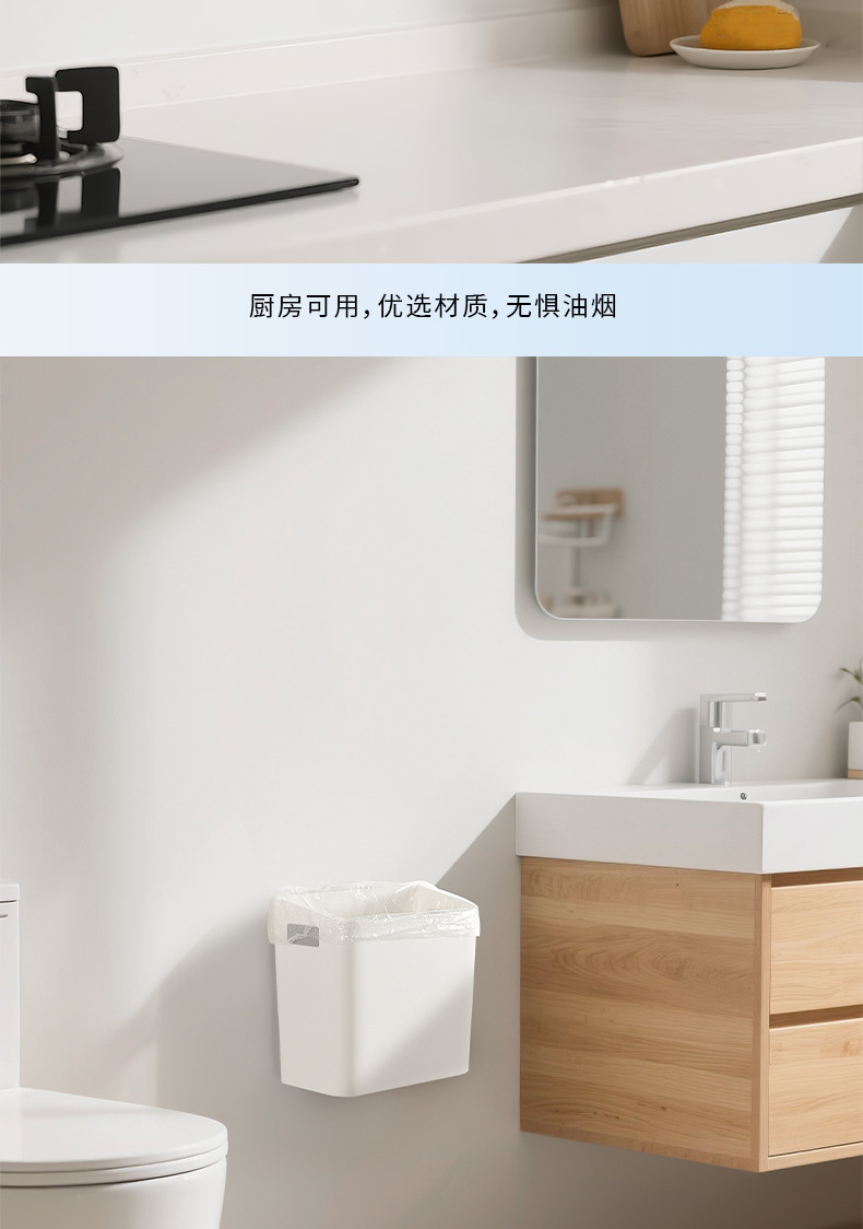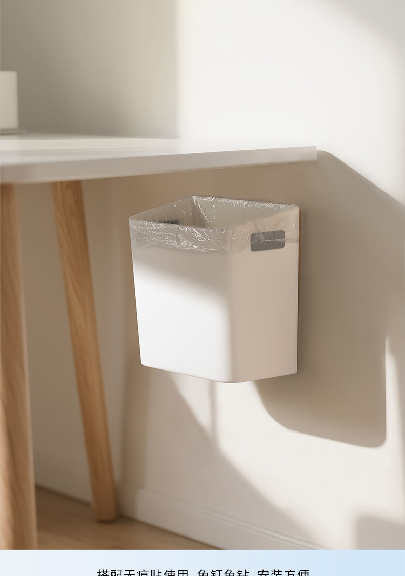 奶油风壁挂垃圾桶家用厨房厨余橱柜加厚耐用收纳桶卫生间厕所纸篓