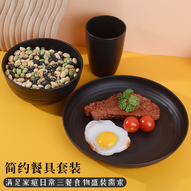 Amazon クロスボーダー黒小麦わら PP プレートボウルカップホームダイニングプレートスープボウルカップアウトドアギフト食器セット