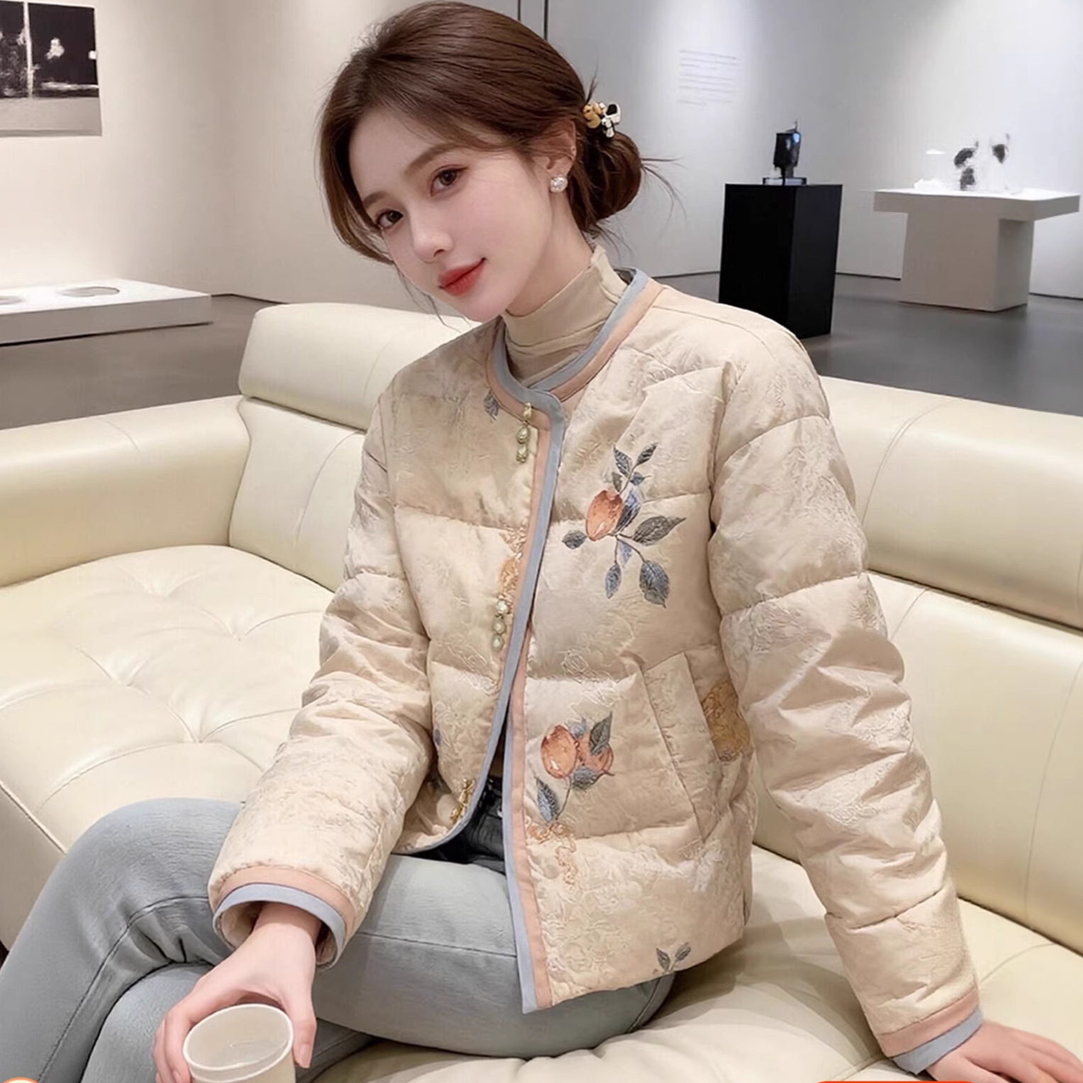 新中式国风印花羽绒棉服女冬季2025新款高级独特气质保暖棉衣外套