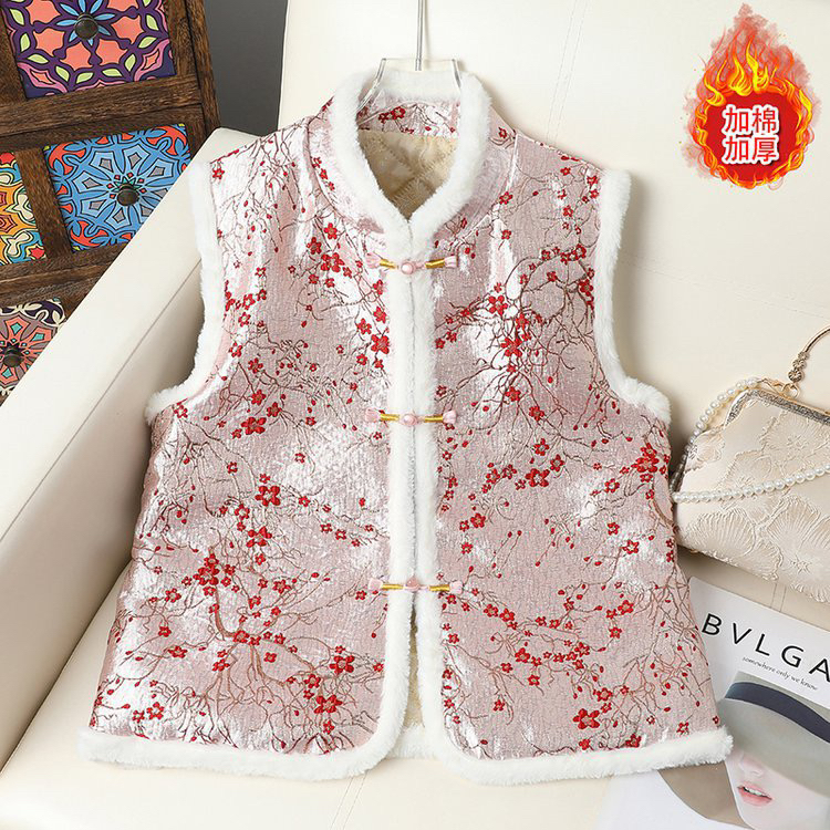 【寒梅夹棉】冬季新款中式国风马甲夹棉保暖背心毛边唐装马夹