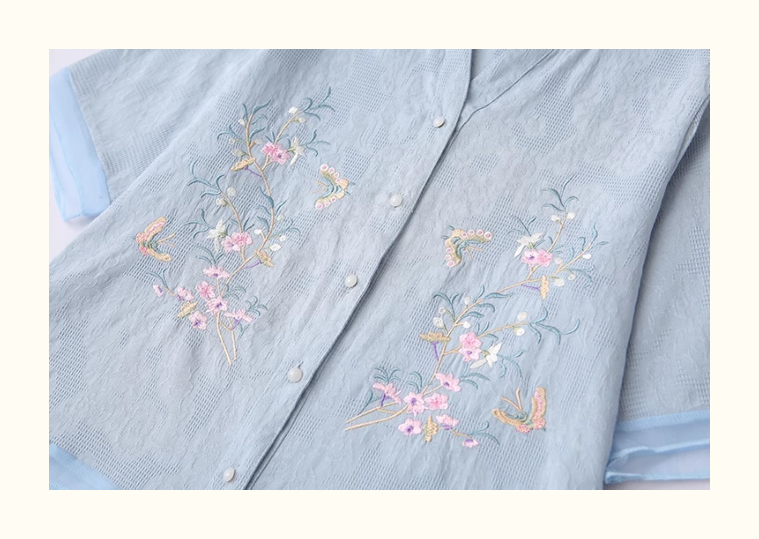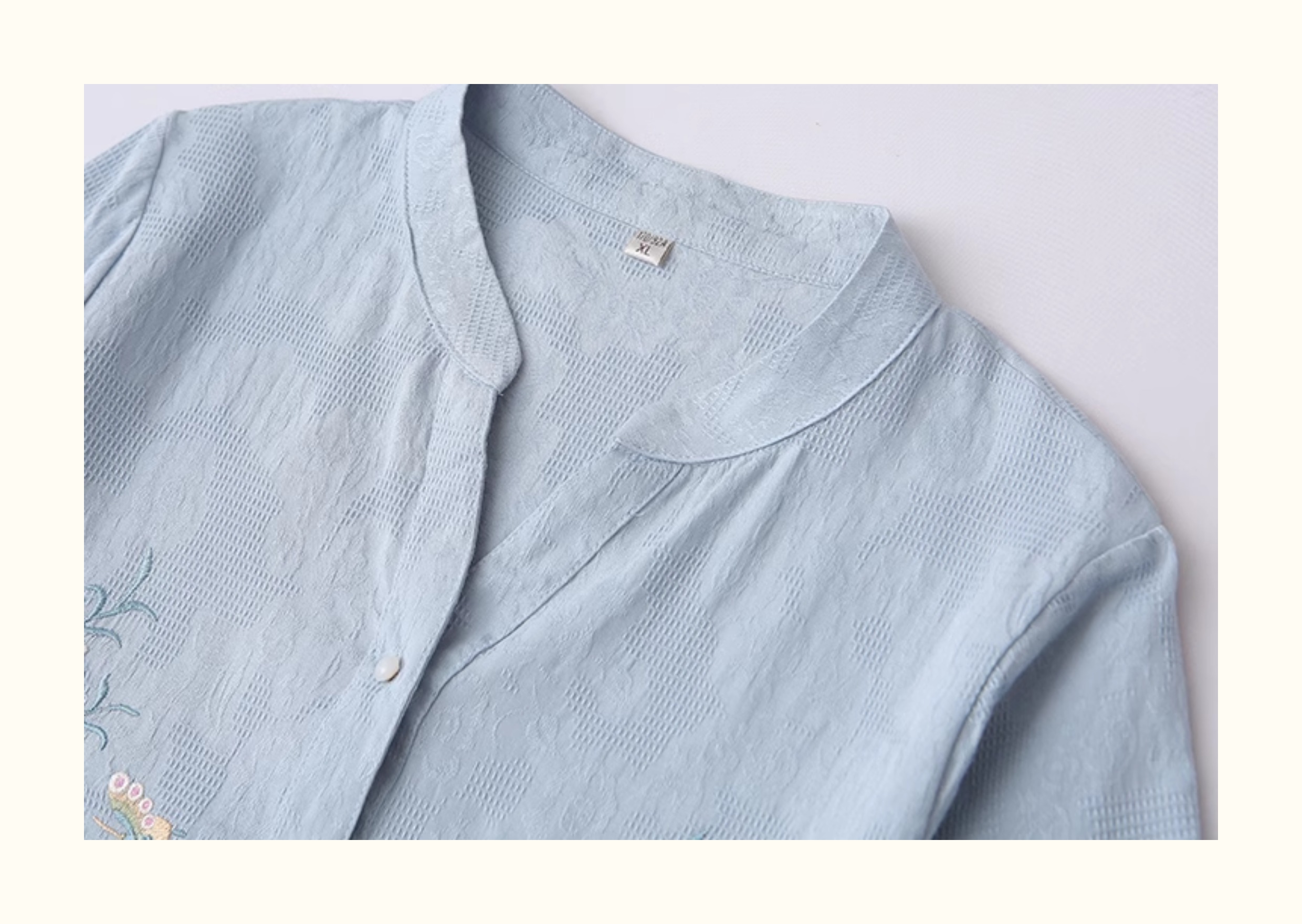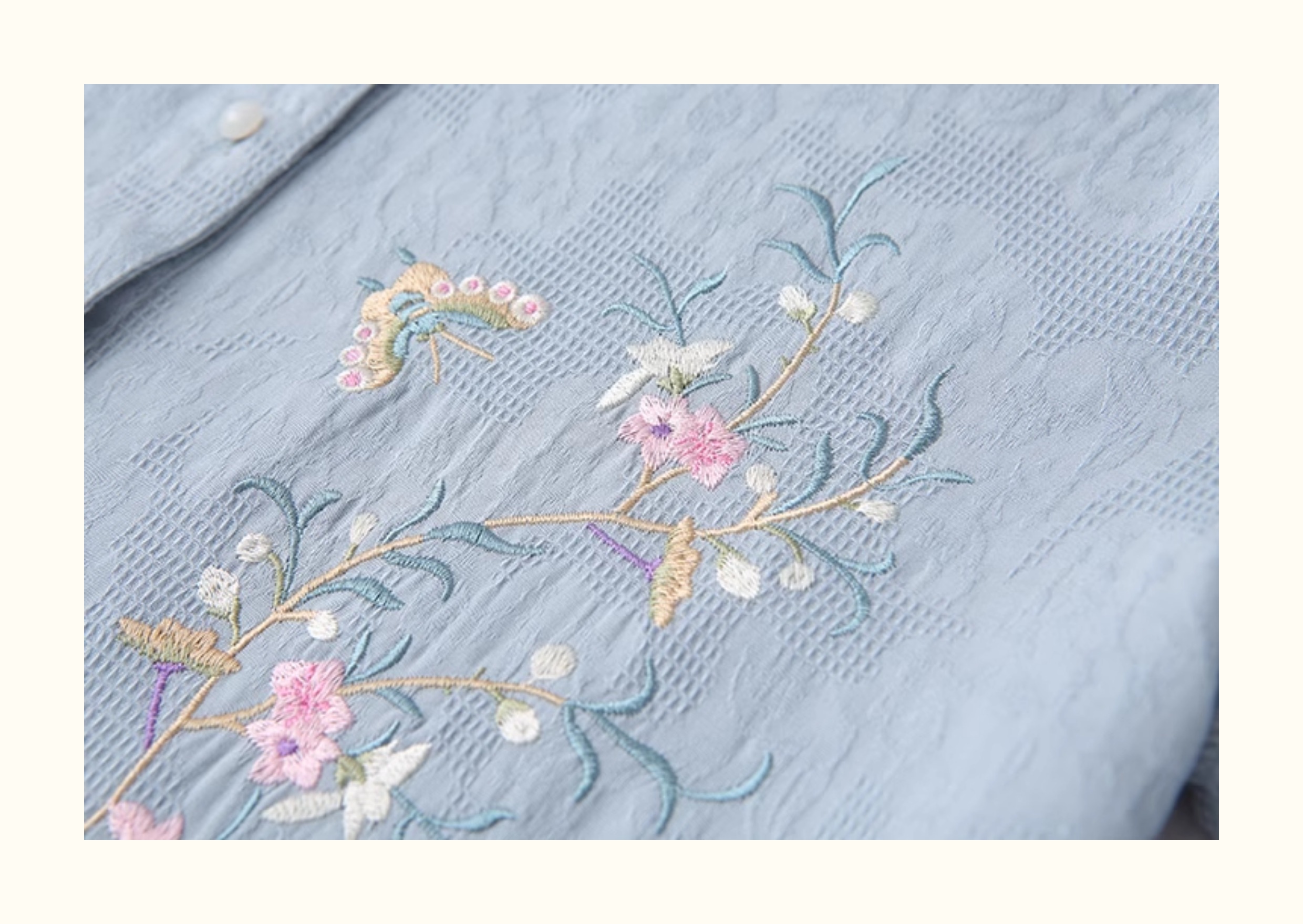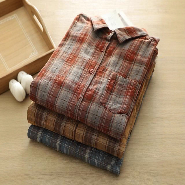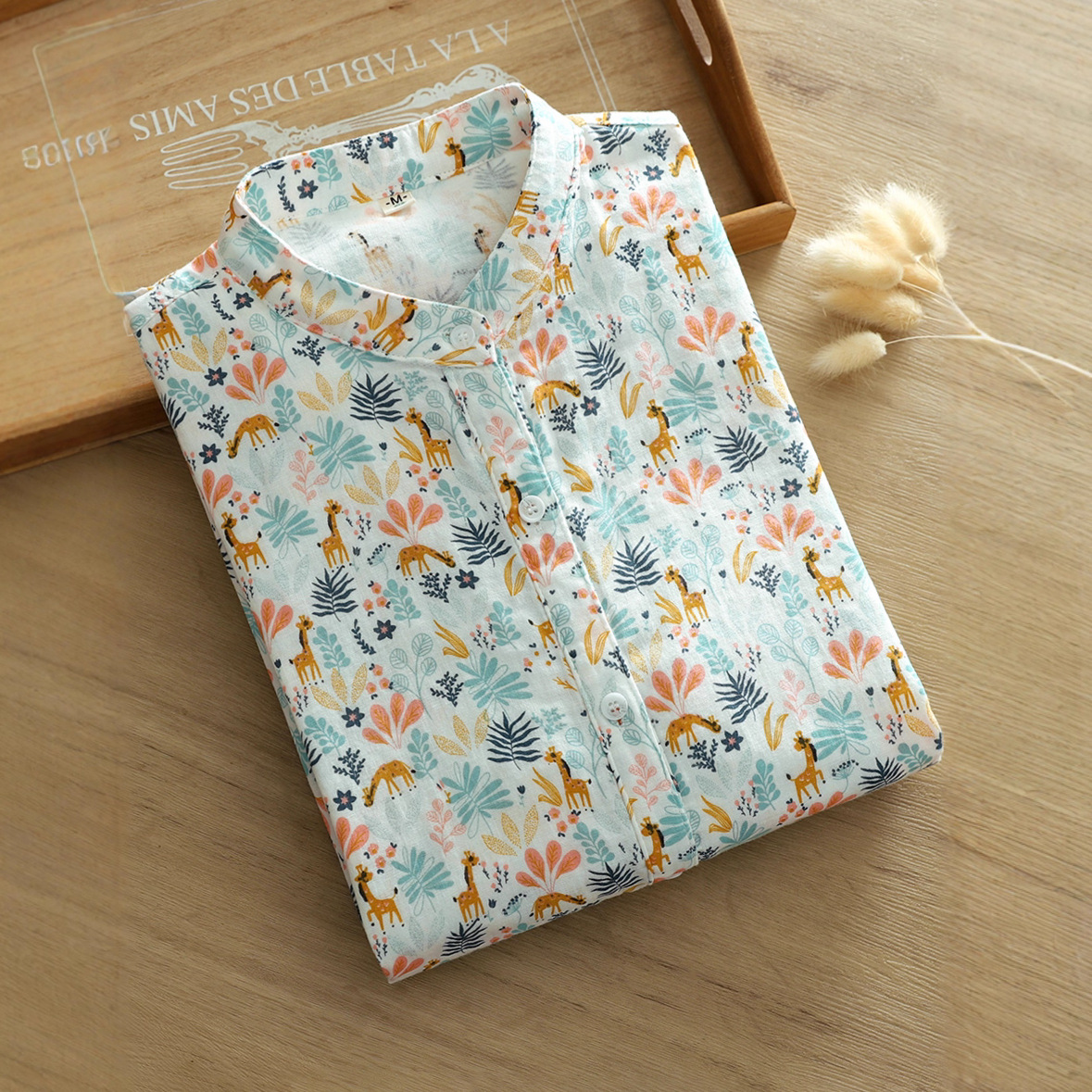 双层棉纱长袖衬衫女文艺清新印花小立领柔软亲肤透气纯棉打底上衣