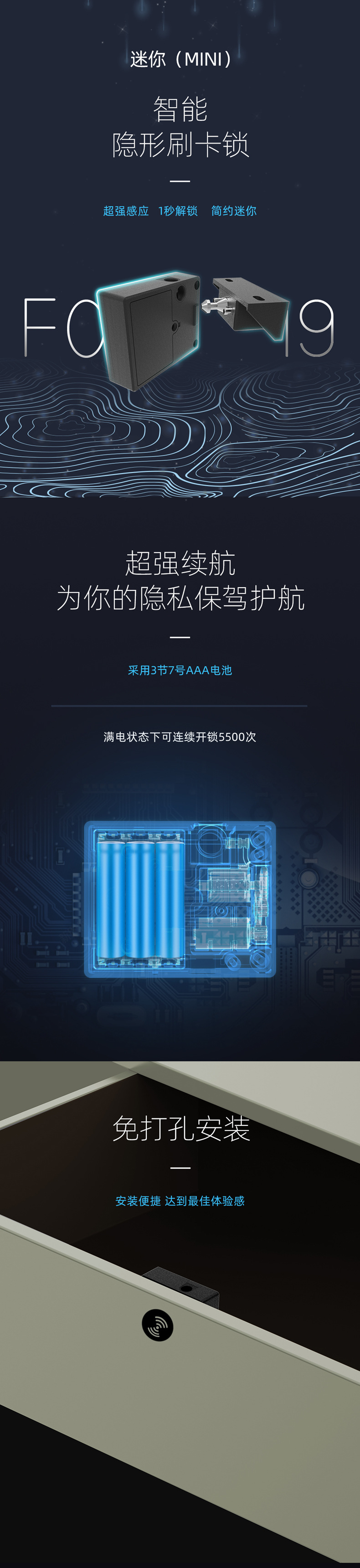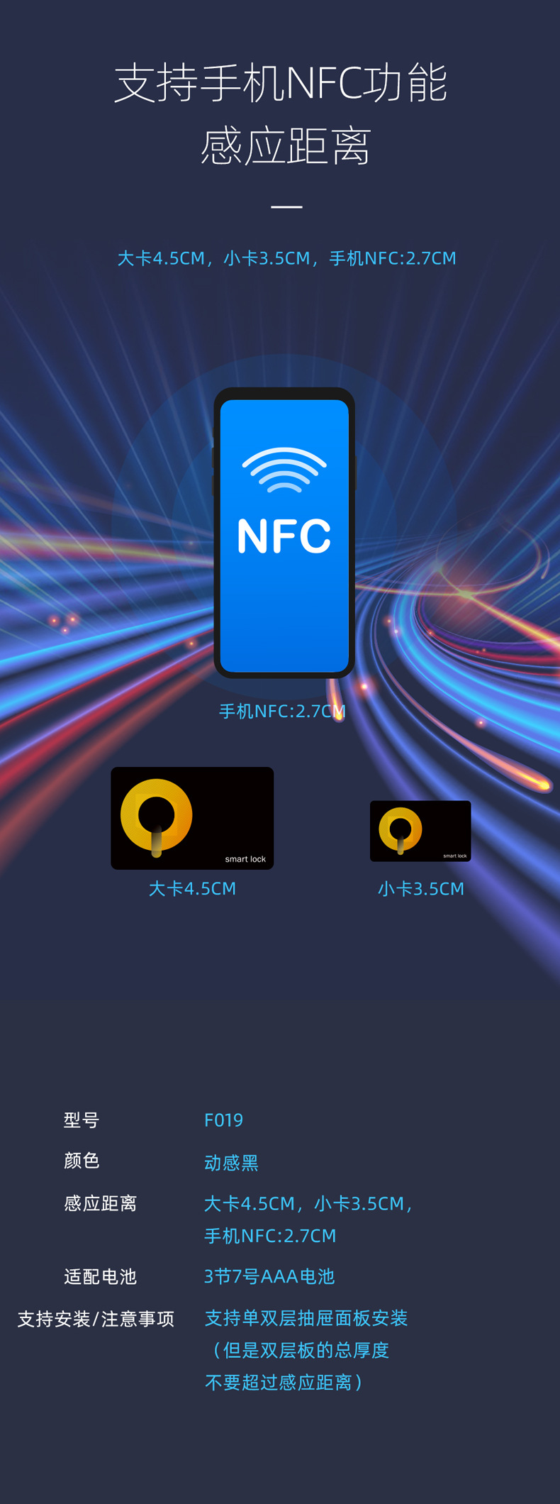 规格 F019基础刷卡锁,抽屉/单柜门【2卡】支持nfc,F019通通款