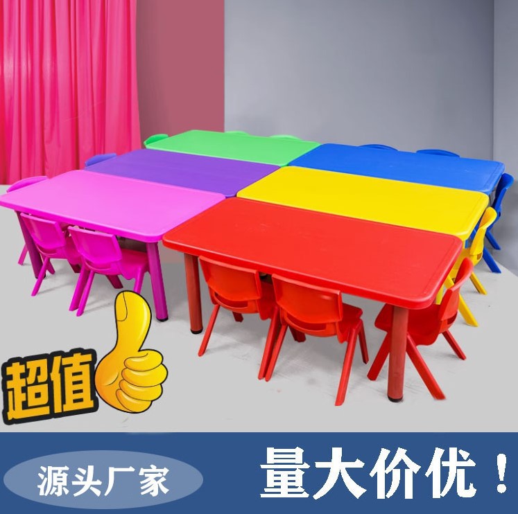 儿童长方形桌子宝宝学习画画玩具升降椅子桌子套装幼儿园塑料桌椅