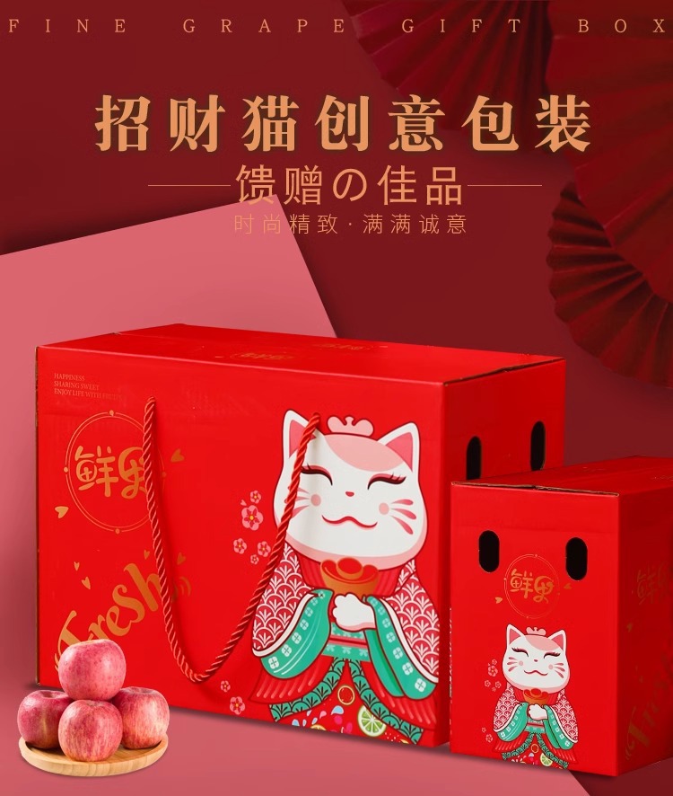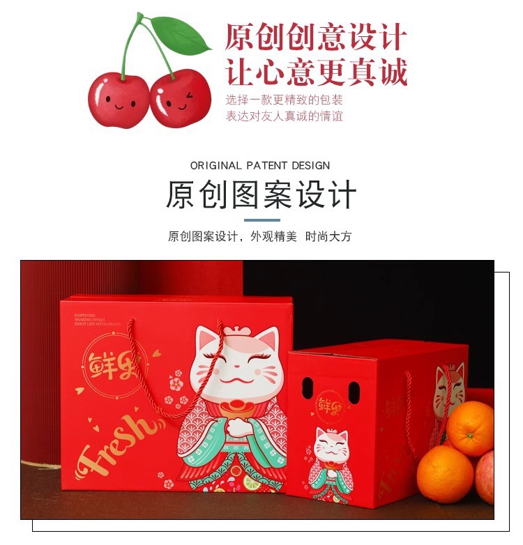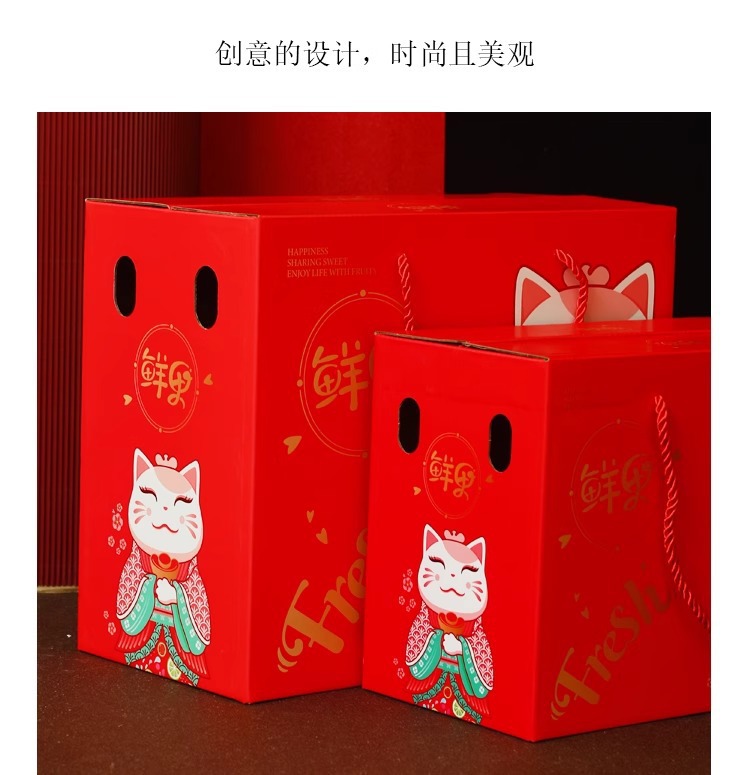 T6 カスタムフルーツボックス 2.5-5kg 個入り招き猫クリエイティブ包装箱高級ハンドヘルド空箱
