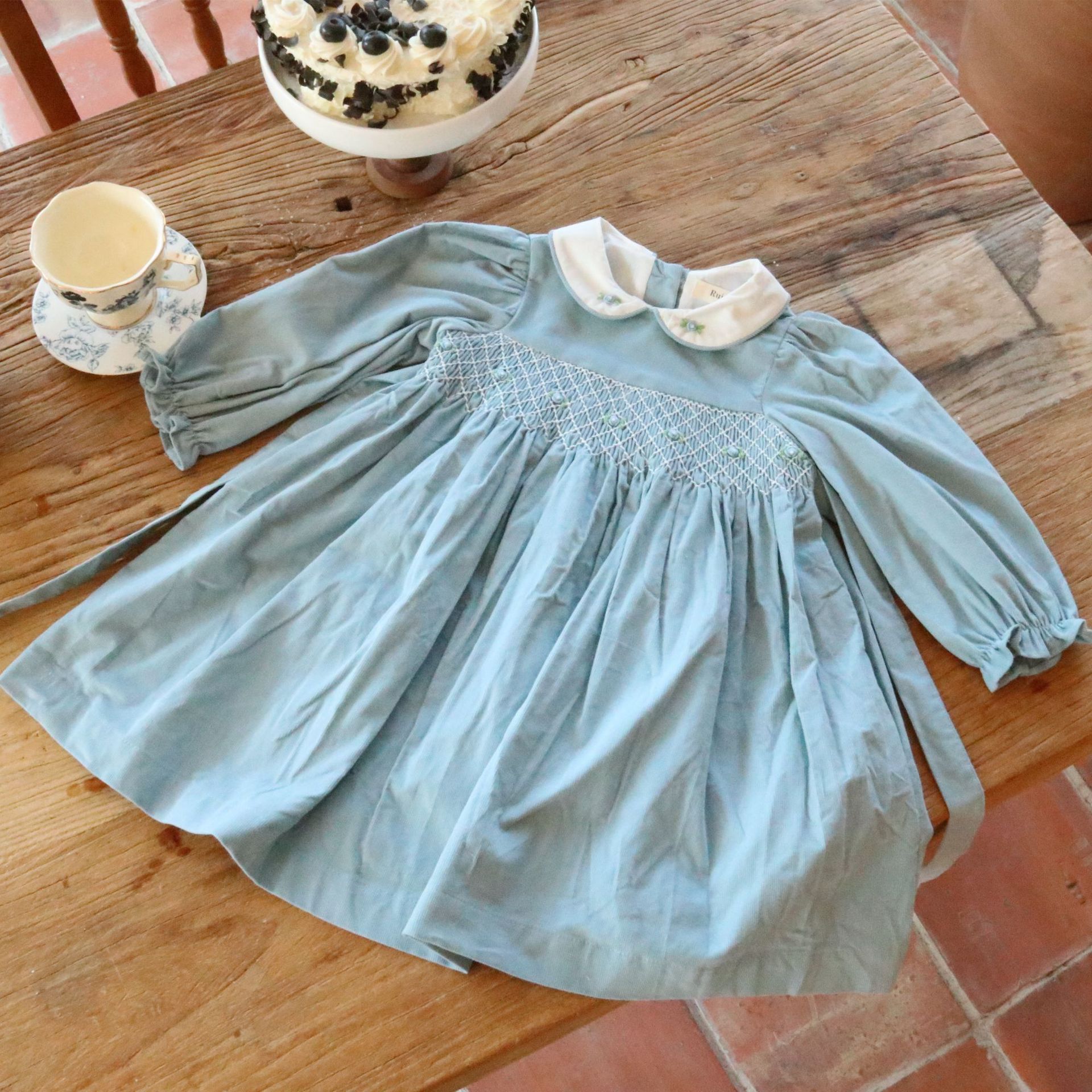 2025春秋手刺繍純色欧米クロスボーダーコーデュロイ女児長袖ワンピースT2521770