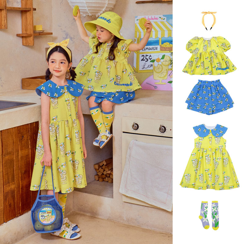 現物! 25夏BE新韓国版女の子プリントワンピースかわいい子供服上着半袖スカートセット