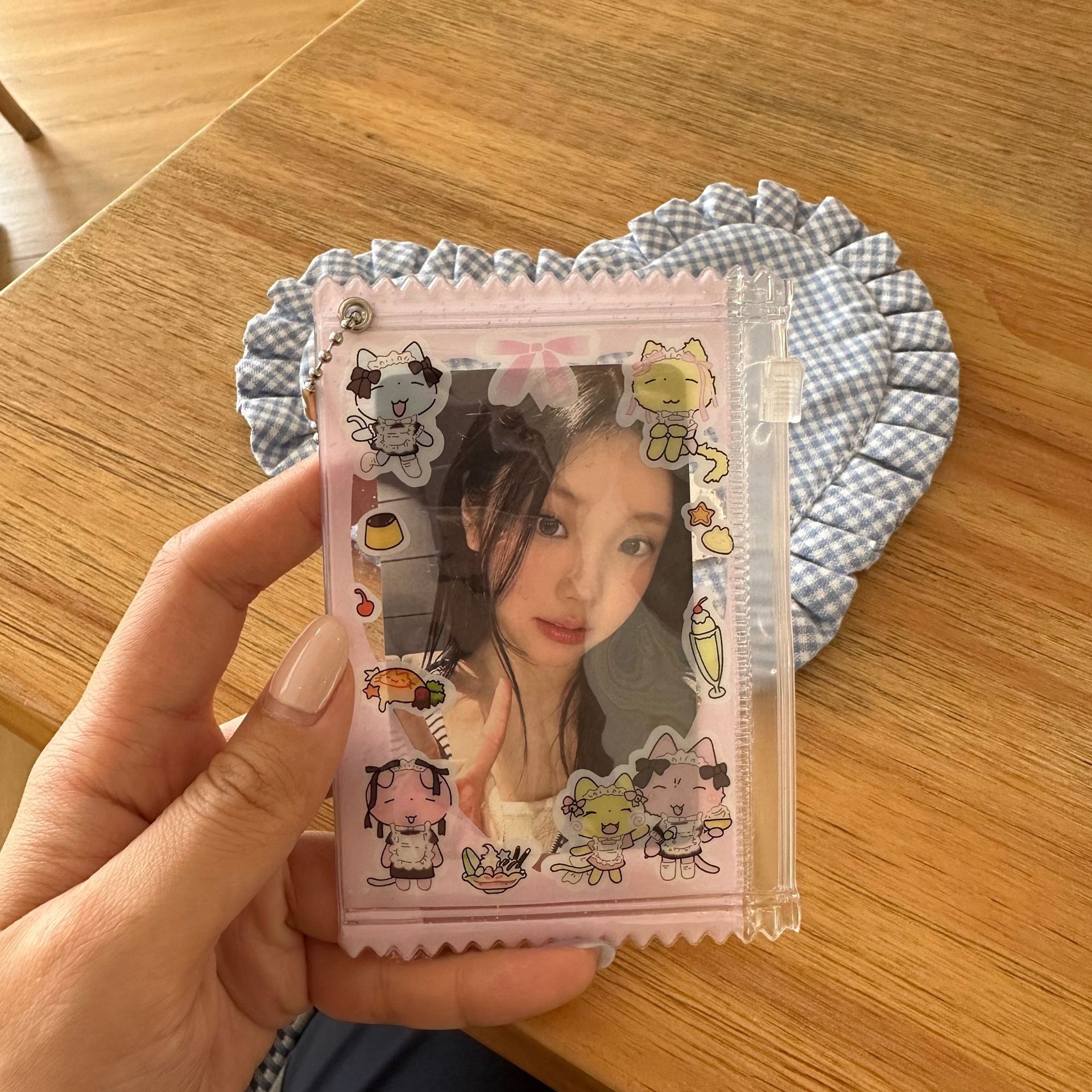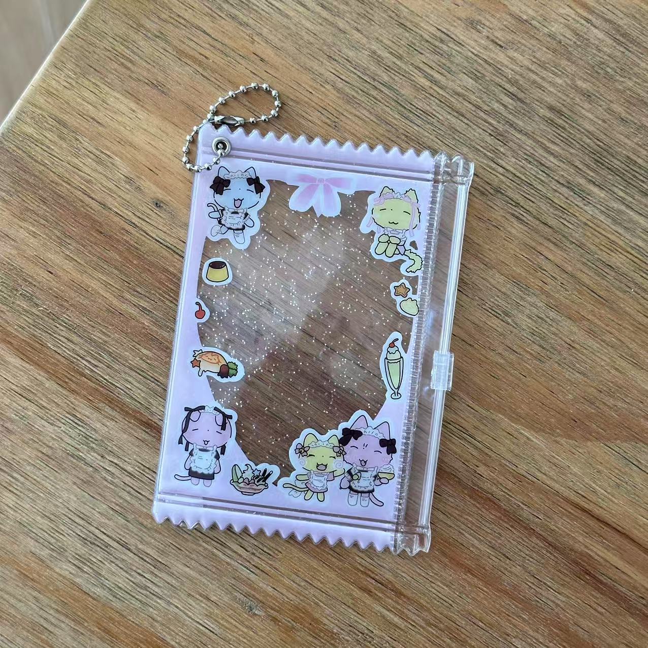 这款拉链袋有两个卡位,拉链内一个卡位,背面一个卡位。3层材都有透明pvc,叠在一起之后就会有水印气泡,介意勿拍噢!
