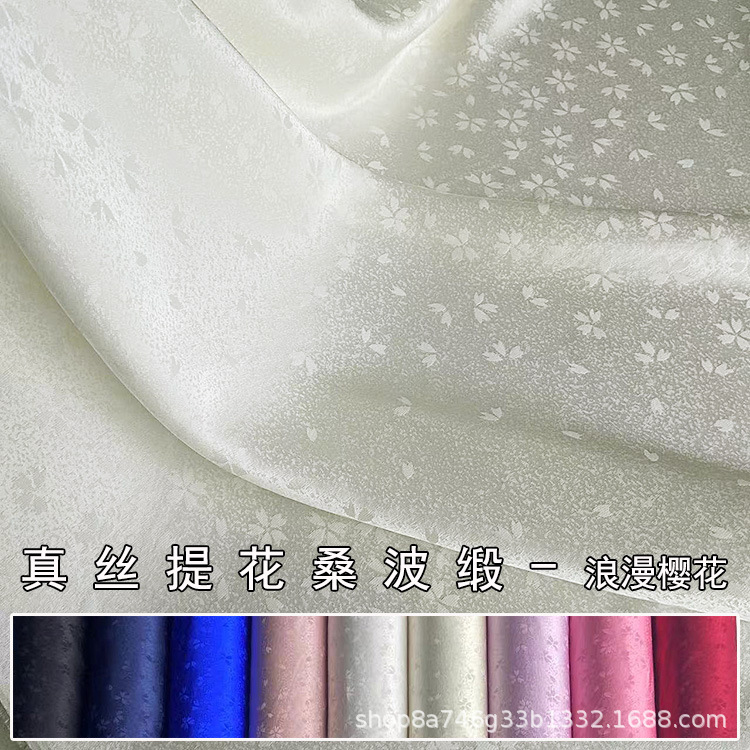 ロマンチック桜シルクジャカードサテン生地復刻正絹绢糸汉服チャイナドレス生地国风