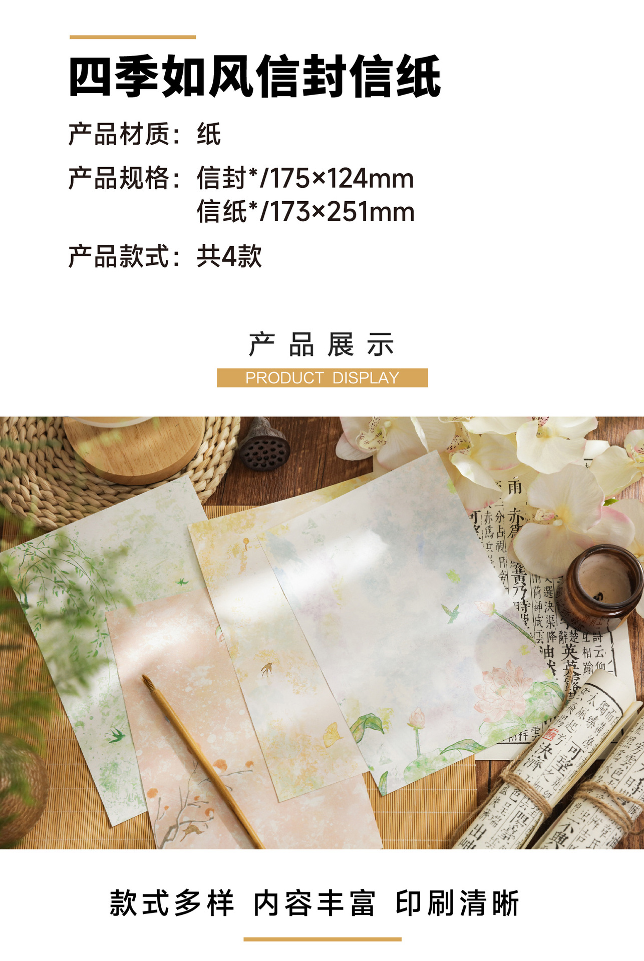 四季の風便箋セット、小さな新鮮でクリエイティブな手書き便箋、文学儀式、ホリデー祝福便箋