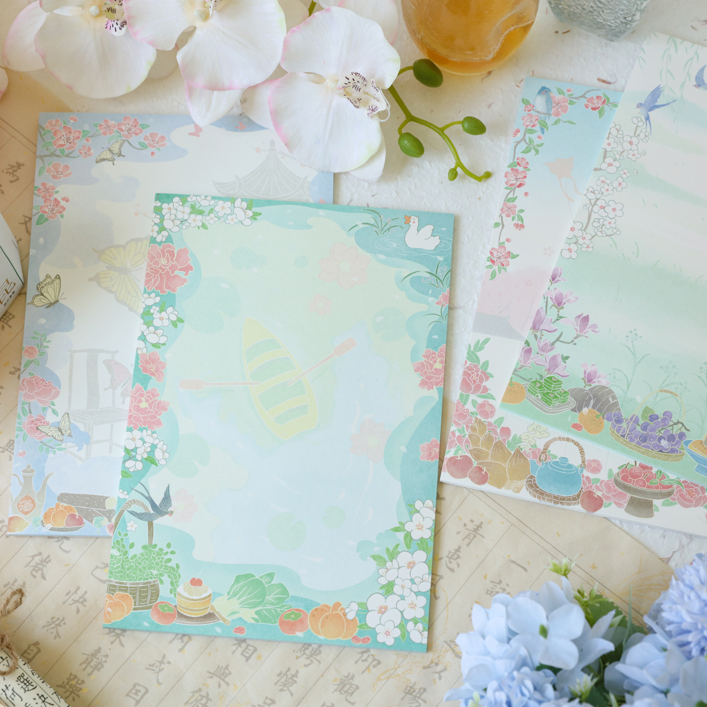 Shiguang A4便箋セット 春の美しいシリーズ 高価値手書きレター シンプルな文学告白便箋