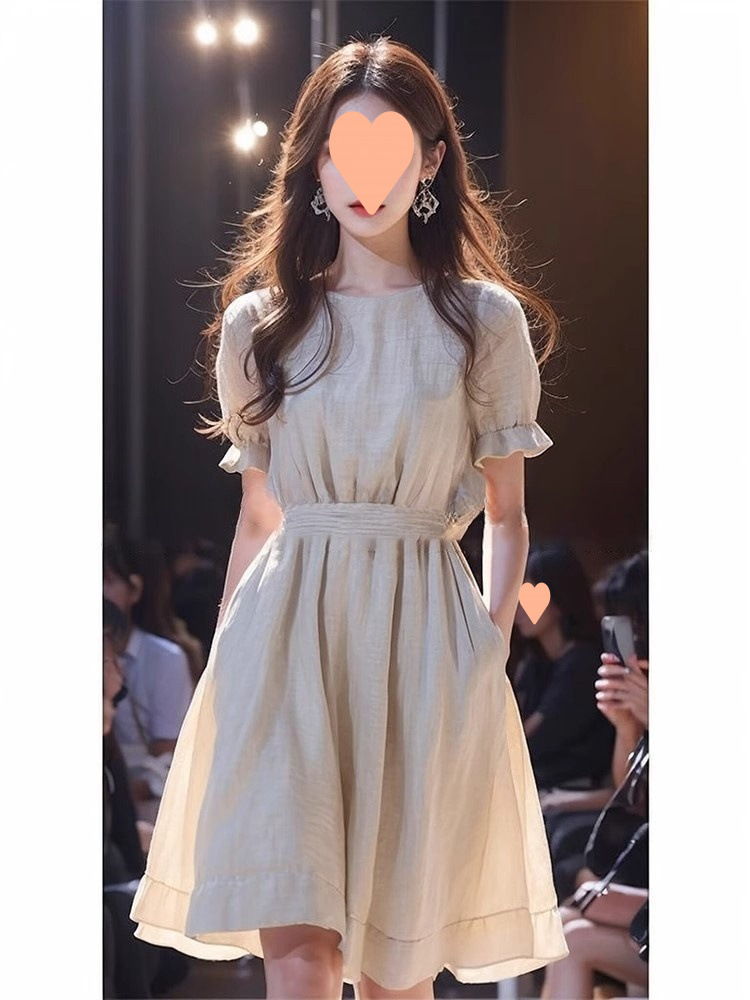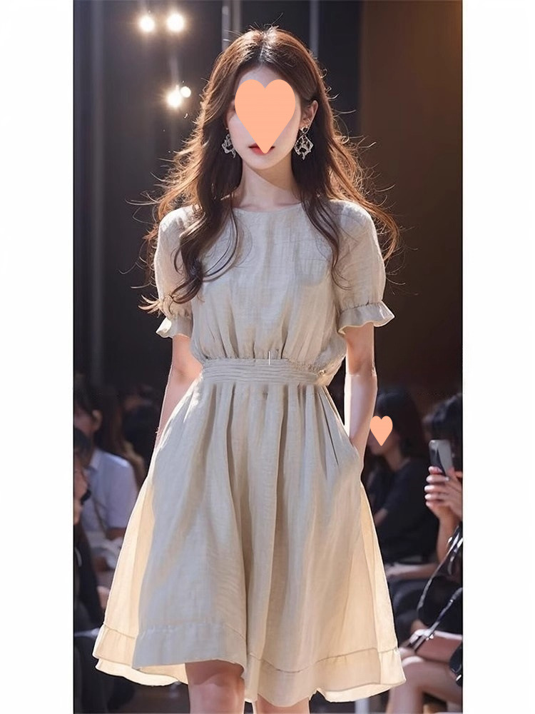 小柄な女性でも背が高く見える、エメラルドドレス、2025年新作夏、軽い贅沢と高級感