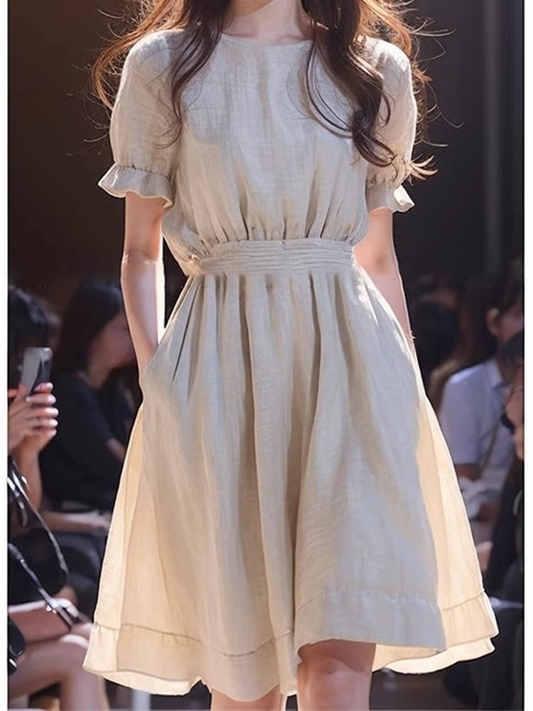 日本の夏の美しい気質のほんのり透けるブラウストップ、レディライクなプリーツサスペンダードレス、レディーススーツ