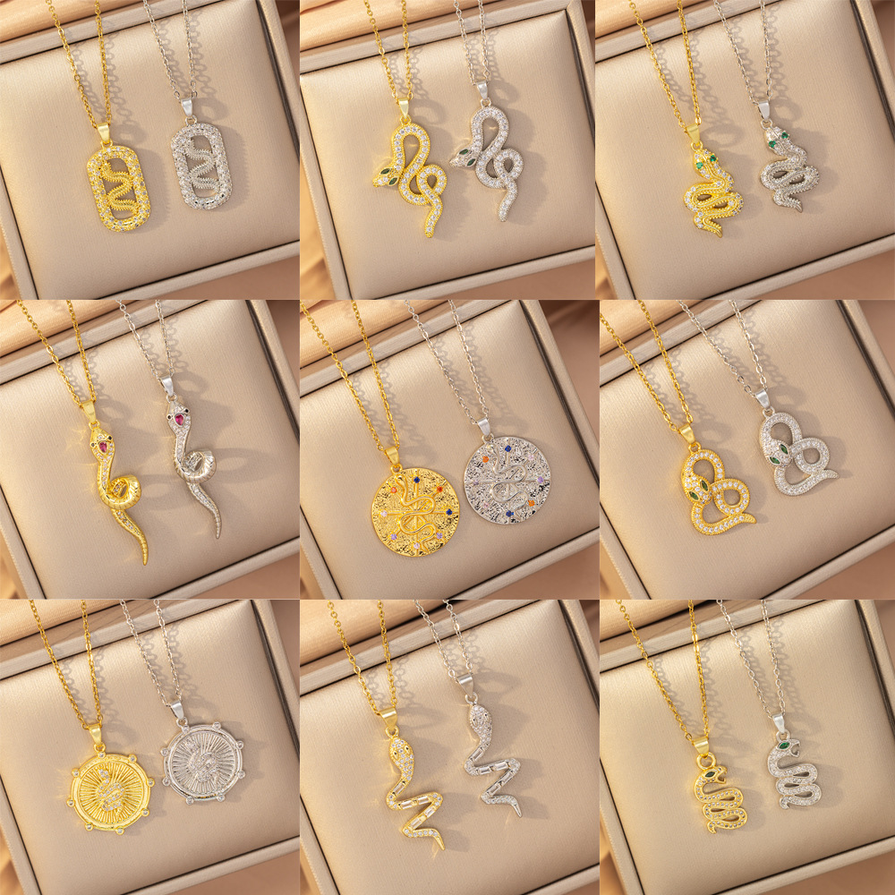 【铜镶锆】跨境热卖蛇形项链女个性时尚不锈钢气质轻奢锁骨链饰品