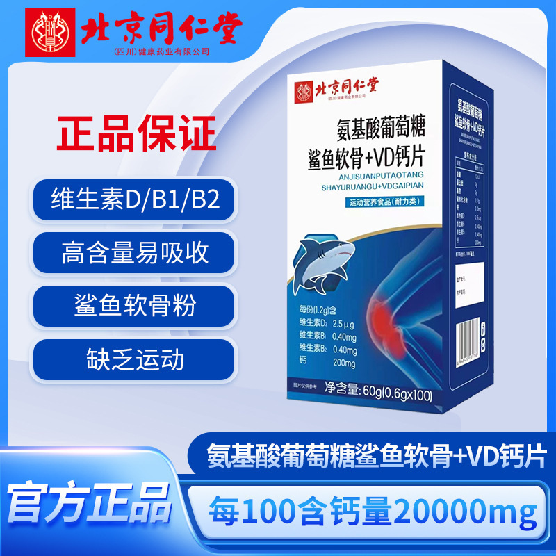北京同仁堂氨基酸葡萄糖鲨鱼软骨vd维生素钙压片糖果关节钙片中老