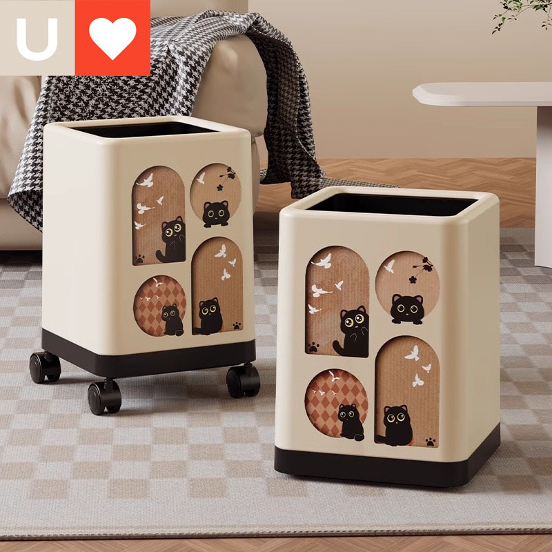 Younai プーリーゴミ箱家庭用リビングルームアンティークスタイル大容量高価値かわいい漫画サニタリーバケツ車輪付き