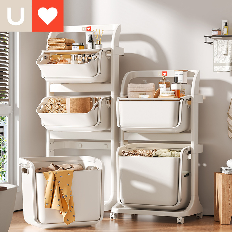 友耐浴室置物架家用塑料衣物收纳篮客厅浴室带轮可移动杂物整理架